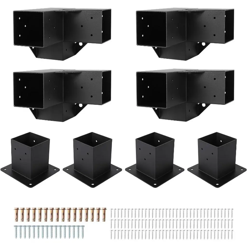 Post Base For Deck,deck Post Bracket With Bolts And Hardware Kit,post Anchor With Powder-Coated Finish - 4 Pcs - 4 Pcs 4X4 Post Base (Type Fe)