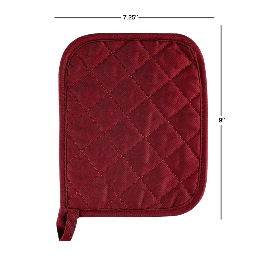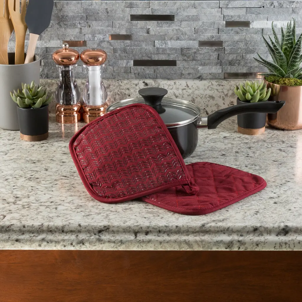Pot Holder Set With Silicone Grip, Quilted And Heat Resistant (Set Of 2) By Windsor Home - Burgundy