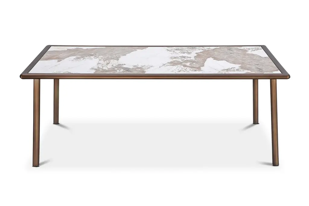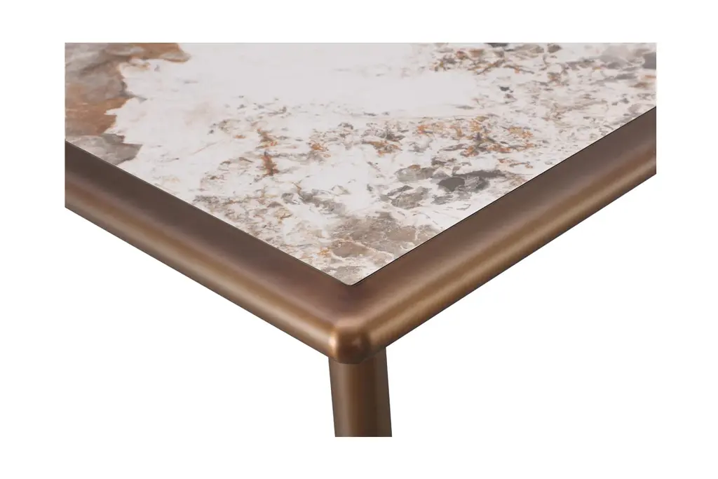 Elevate your dining room with the Potenza Dining Bundle. This contemporary set features the Potenza Dining Table and your choice of 4 or 6 matching dining chairs. Both pieces feature stunning bronze-finished frames with angled legs, giving the set a cohesive look, while the contrasting off-white of the boucle chair upholstery and the marble style of the tabletop add further contemporary appeal. The tabletop is crafted from sintered stone, making it extra durable and heat resistant. This unique set can comfortably fit 4-8 people.