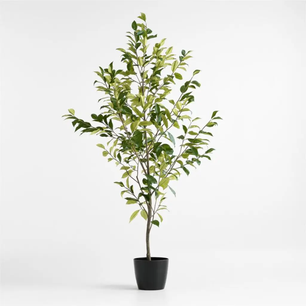 Lush, life-like and unparalleled in quality, our coffee tree brings a touch of the tropical to your decor. Skillfully crafted to look just like the real thing, the tall botanical graces the home with a profusion of hand-dyed deep green leaves. The effect is so convincing that your guests will marvel at your green thumb, yet there's no maintenance or natural light needed. Just place the coffee tree anywhere that needs a boost of greenwe especially love it in a breakfast nook. Although already potted in its own black plastic container, we recommend "planting" the tree in one of the many attractive pots or baskets in our collection (sold separately).