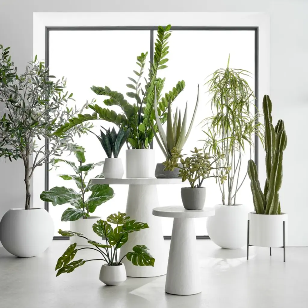 Lush, life-like and unparalleled in quality, our olive tree brings a touch of the Mediterranean to your decor. Skillfully crafted to look just like the real thing, the nine-foot-tall botanical graces the home with the same silvery green color and graceful lance-shaped leaves of an actual olive tree. The effect is so convincing, your guests will marvel at your green thumb, yet there's no maintenance or natural light needed. Just place the olive tree anywhere that needs a boost of (faux) greenery. Although already potted in its own black plastic container, we recommend "planting" the tall tree in one of the many attractive pots or baskets in our collection (sold separately).