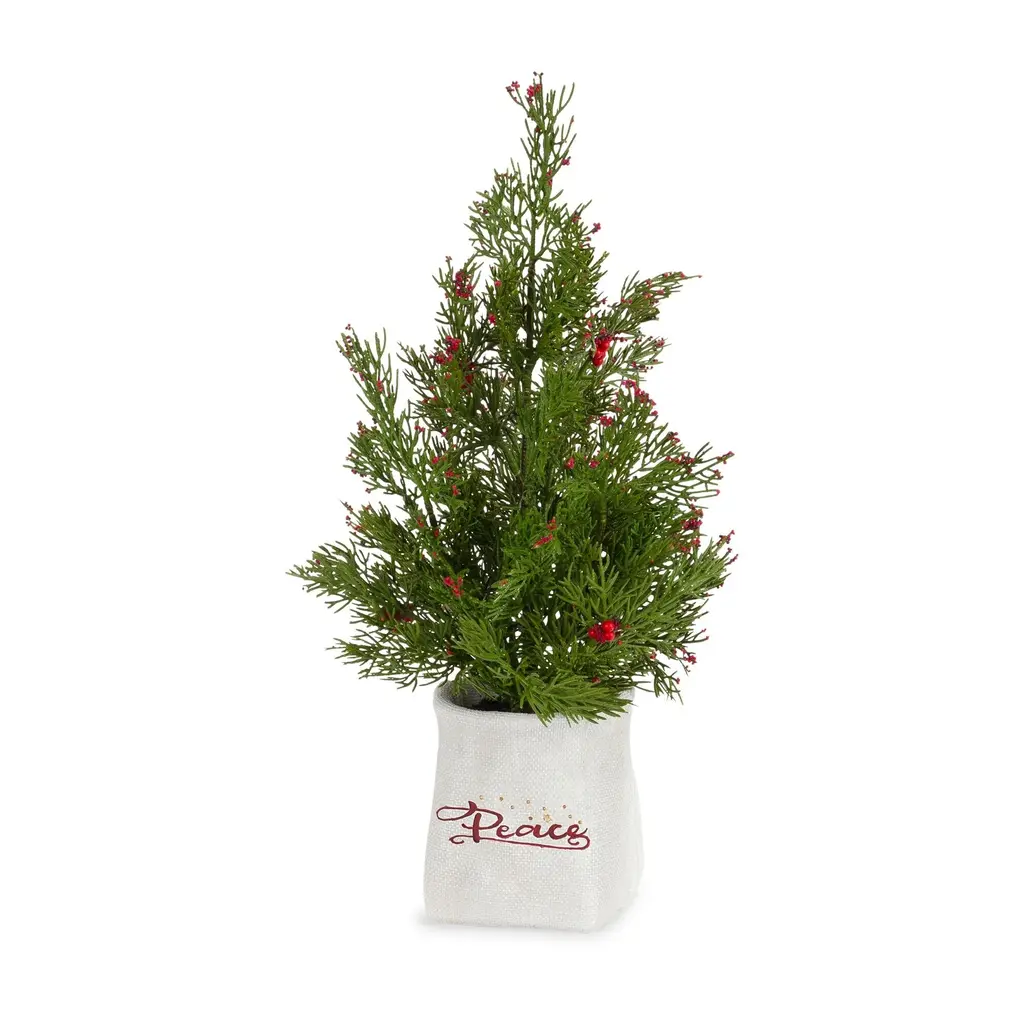 Potted "Joy" And "Peace" Pine Artificial Christmas Tree - 16.5" - Unlit - Green - 1.5 Foot