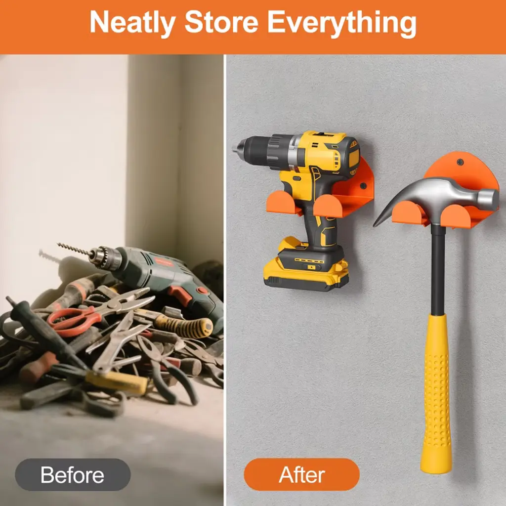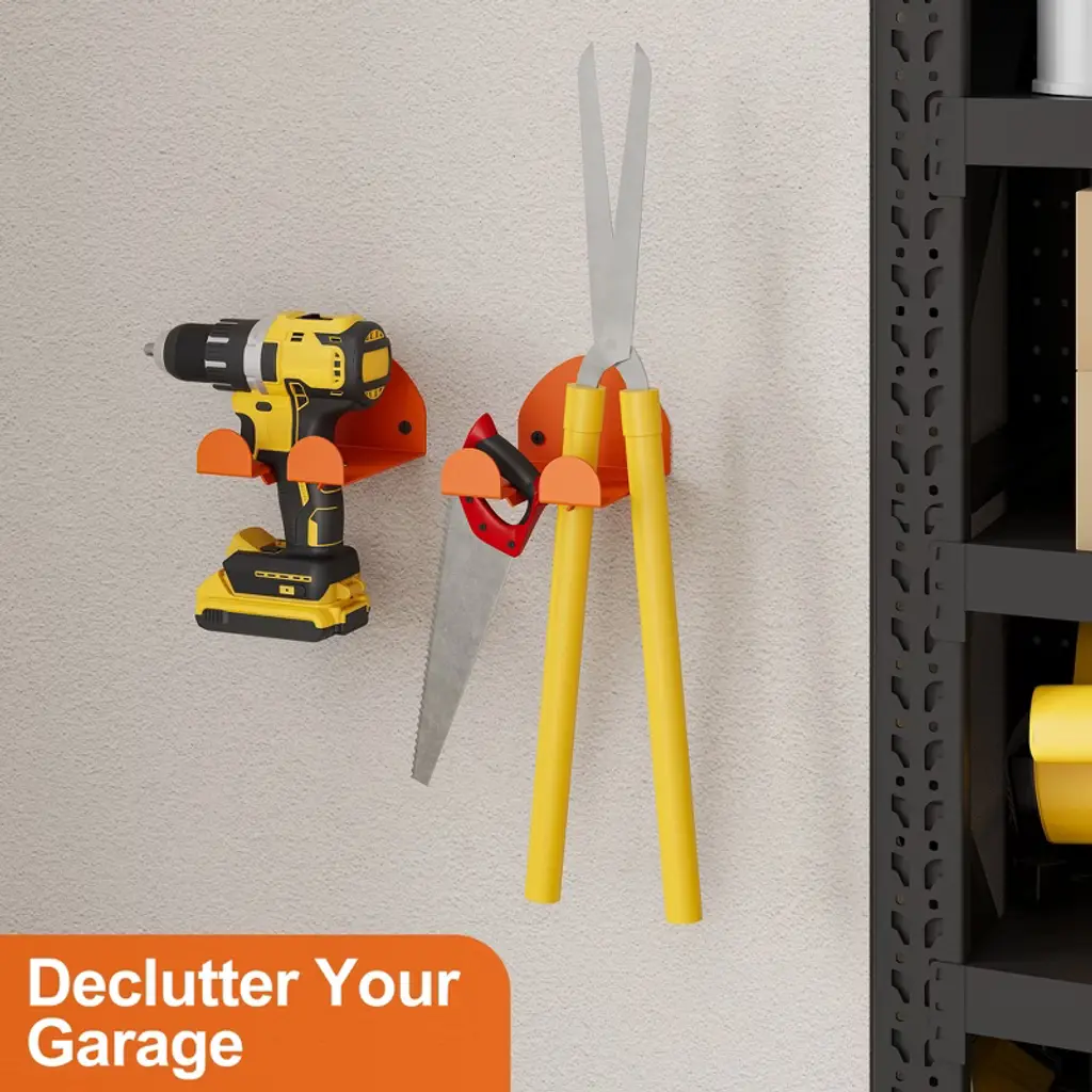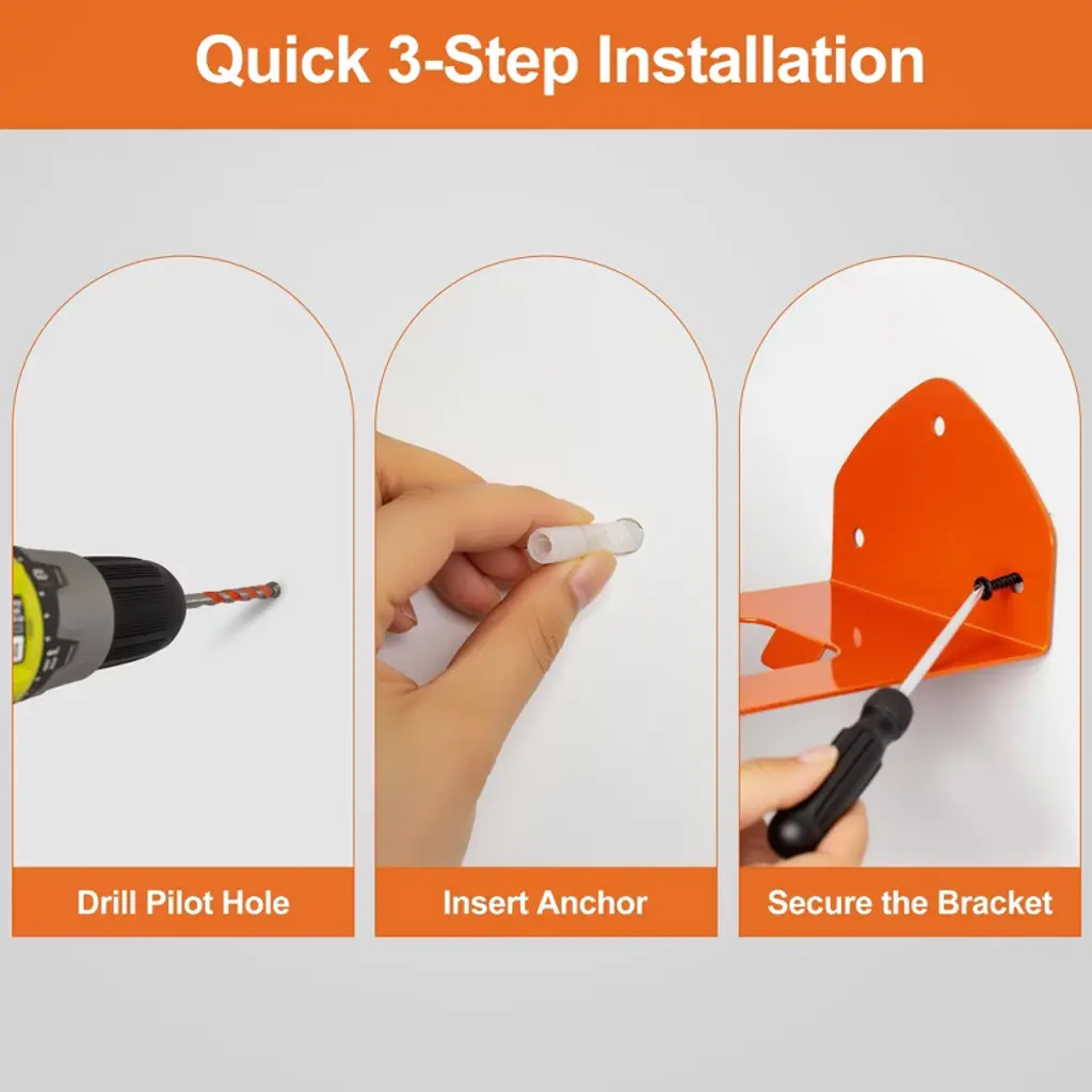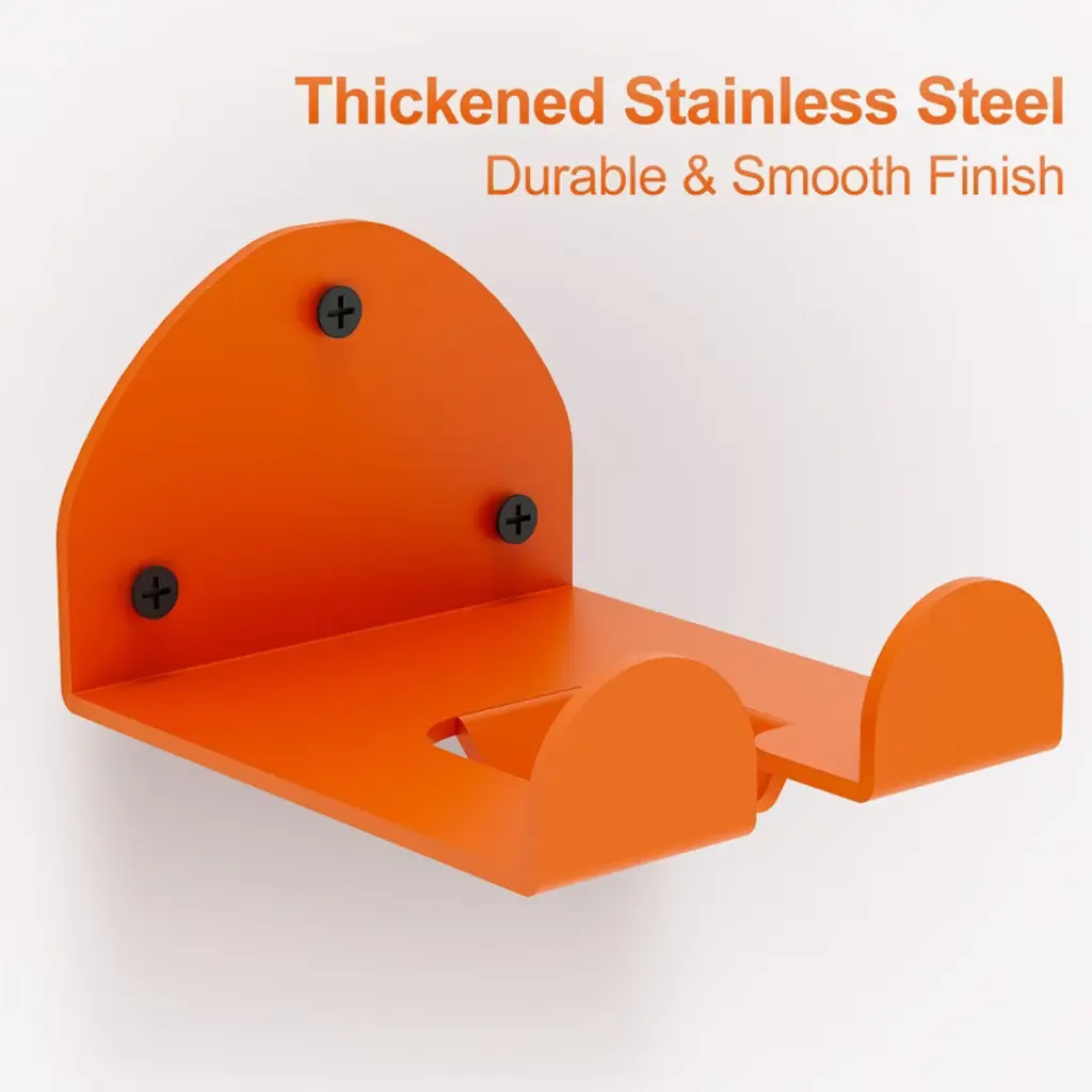 Premium Heavy-Duty Weed Eater Hanger. Crafted from thickened stainless steel with an orange powder-coated finish, this tool holder delivers superior strength, rust resistance, and a smooth, hand-friendly design. The kit includes 2 racks, 6 screws, and 6 expansion tubes for a secure, wobble-free installation on drywall, concrete, brick, or wood. With a high weight capacity, it's perfect for organizing string trimmers, shovels, rakes, drills, leaf blowers, hoses, bikes, and more in garages, sheds, or gardens. Saves space while keeping tools easily accessible, just drill, mount, and go! A must-have for tidy workshops and tool storage.