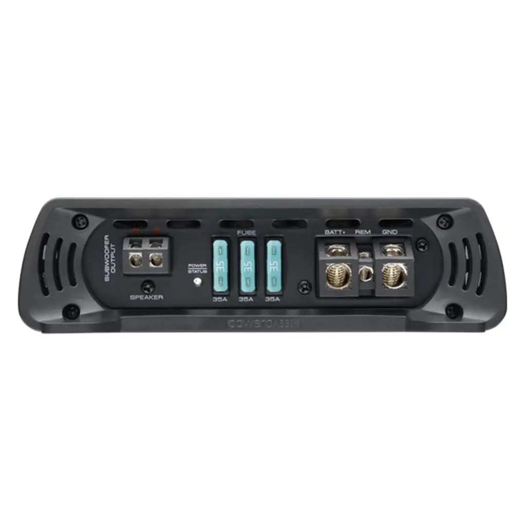 Borrowing from Powerbass's former ACS series, these new amplifiers offer upgraded features, terminals and a dual layer PCB all packed in the most compact chassis allowable. To accomplish this they selected SMD parts and engineered a brand new high density heat sink engineered for maximum efficiency and cooling. The result, an all new line-up of two, four, five and mono channel models that offer amazing performance and fantastic value. Ultra efficient, the PB Series amplifiers produce plenty of low distortion high fidelity audio in a footprint small enough to fit nicely in nearly any vehicle. The PB Series Amplifiers provide the perfect mix of performance and style in a sleek new compact chassis. Features: 1,000 Watt High Efficiency Class D Design 1-OHM Stable Mono Block Amplifier MOSFET Power Supply High Level (Speaker)/Low Level (RCA) Input Remote Soft Delay Turn On/Off Circuit Variable Low Pass Electronic Crossover Selectable 12dB Bass Boost EQ Variable Gain Control Remote Level Control Port (for optional PB-GAIN1 controller) Protection Circuit: Impedance Over-load, Speaker Short, Circuit, Thermal Overheating, and DC Output. Specifications: Peak Power: 2000 watts Power Supply: Unregulated PWM Inputs: RCA, 1 Pair Input, 1 Pair Speaker Level Input Dimensions (in Inches): 12.0" x 7.1" x 2.0" Depth: 12.0" Channels (mono): 1 Variable Subsonic Freq: Variable 15 Hz - 50 Hz Equalization Boost/Cut: Switchable 0/12 dB @ 45Hz Height: 2.0" Width: 7.1" Switchable Subwoofer EQ: 0 / +12 dB @ 45 Hz Subwoofer EQ Frequency: 45 Hz Variable Subwoofer EQ: Switchable 0/+12 dB Low-Pass Crossover Freq: Variable 30 Hz - 250 Hz High-Pass Crossover Freq: N/A Crossover Slope: 12 dB Input Sensitivity: 0.25 V - 6.0 V S/N Ratio: >90 dB Total Harmonic Distortion: 0.5% @ 1,000 watts Strapped Output Power @ 2ohms: N/A Output Power (14.4 V) @ 4 ohm: 400 watts x 1 Output Power (14.4 V) @ 2 ohm: 600 watts x 1 Output Power (14.4 V) @ 1 ohm: 1000 watts x 1 Frequency Response: 10 Hz - 250 Hz