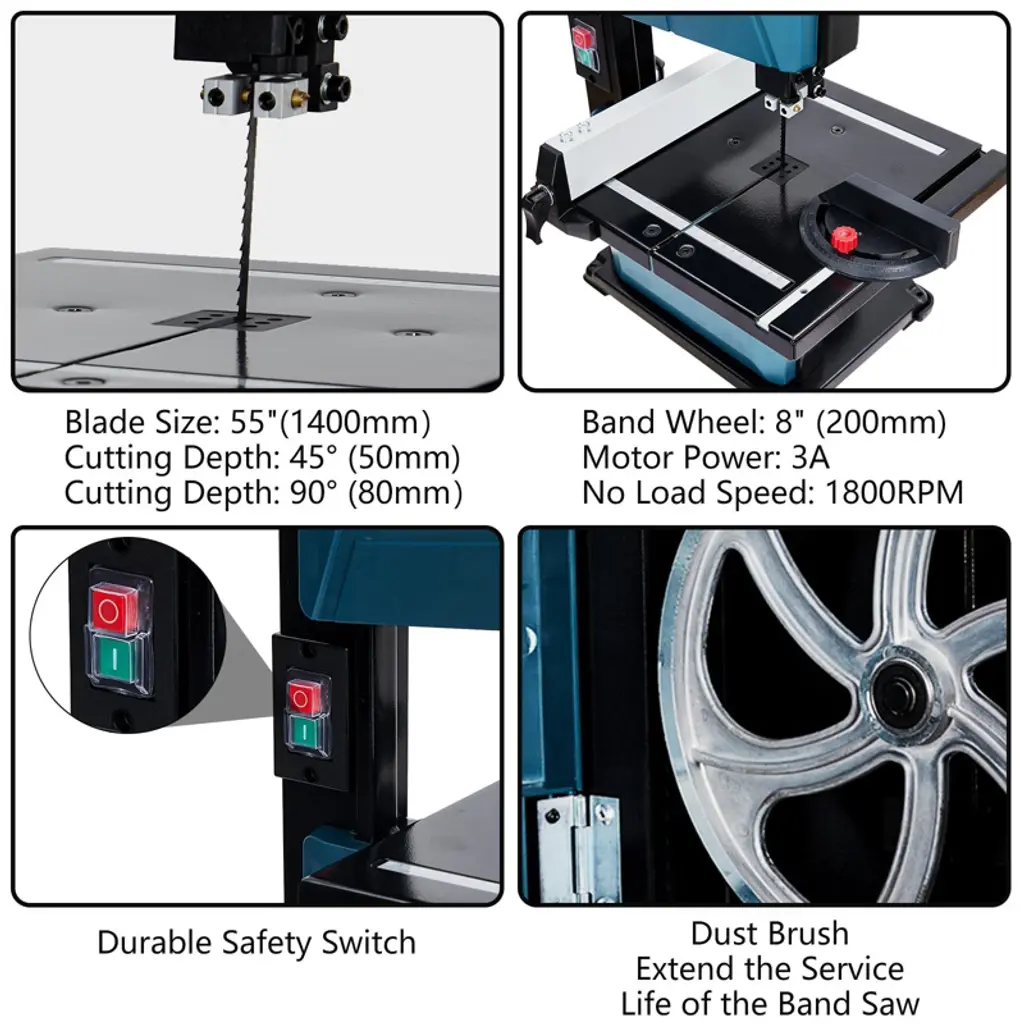 Powerful 3A Pure Copper Motor 8 Inch Band Saw With Accurate Multi-angle Cutting,easy And Clean To Use,ideal For Woodworking Aluminum Plastic Projects