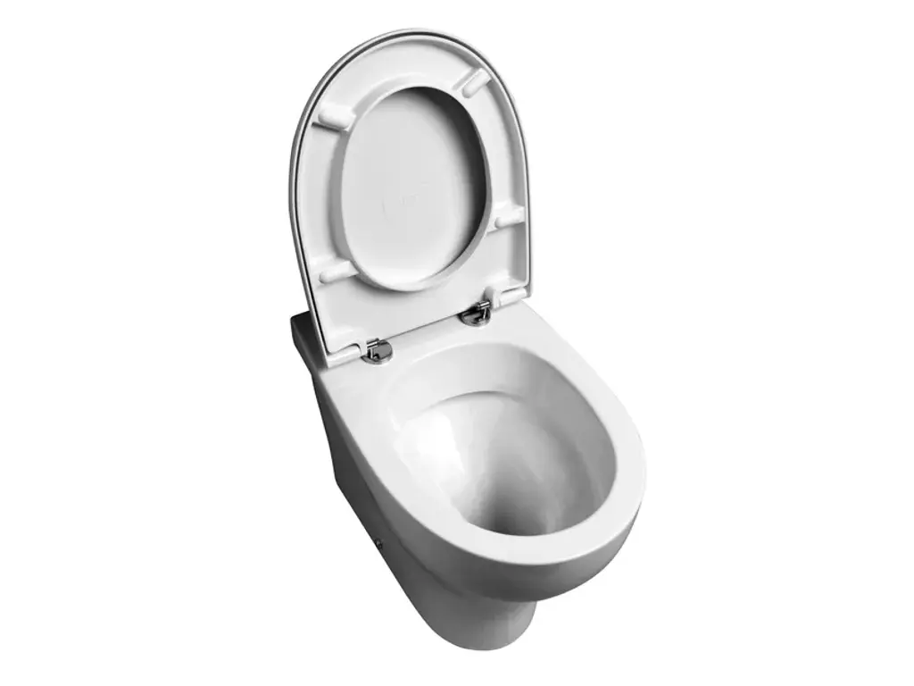 Pratica is a floor mounted ceramic toilet.Mod. PAVCTTE00000: easy Clean floor trap wc with adjustable flush system.Mod. PAVYTP000000: w.c./bidet with wall trap changeable into floor trap by plastic technical bend (completed of water supply, fixing screws cod.VFV).Pratica is a collection with a basic and essential spirit that lends itself to meeting the demands of a varied and wide-ranging public, especially thanks to its simple but never anonymous design. Its extreme functionality makes the series suitable both for domestic environments and for uses linked to the contract world. The collection of Pratica sanitary wares is also available in the version with the patented Water Saving, Easy Clean and adjustable flush system.