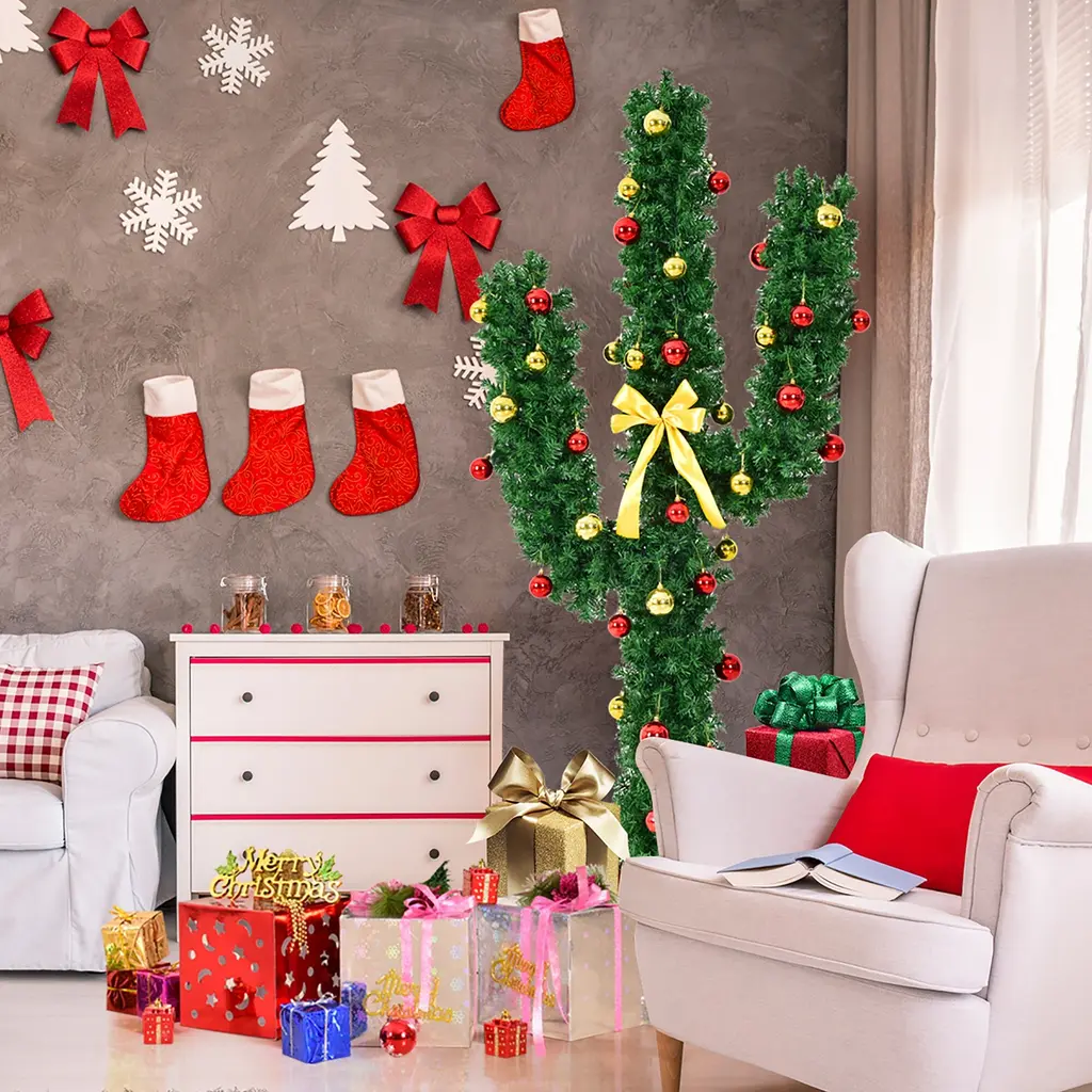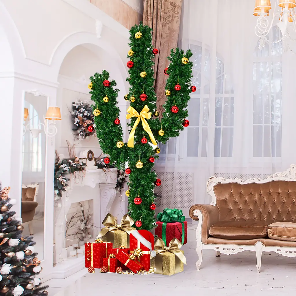 Pre-Lit Artificial Cactus Christmas Tree With Led Lights - 6 Foot