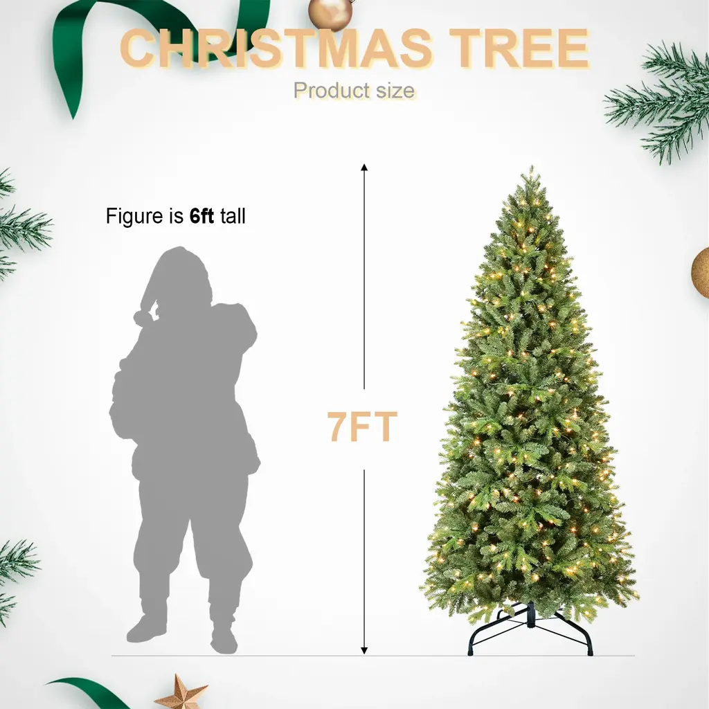In the busy modern life, people are more and more seeking for convenient and cozy experience. And with its unique design and high-quality materials, Modern Artificial Christmas Tree brings you a happy and relaxing Christmas season. Whether it's a family gathering or a shopping mall decoration, this PE/PVC hybrid automatic Christmas tree can perfectly show your love and pursuit of the festival.Automatic Structure:This PE/PVC hybrid automatic tree has an innovative automated structure design. There is no need for tedious assembly process, just simply unfold it and finish the installation. The metal hinges and collapsible base allow you to set up and take down the tree quickly and easily. You can create the perfect holiday atmosphere in just a few minutes, bringing joy and warmth to your home.Fluffy and Realistic:Our carefully selected PE/PVC leaves make the tree more fluffy and realistic. Whether you observe the trees up close or from a distance, it's hard to tell the difference between them and real trees. Every detail has been carefully designed to provide you with the most realistic Christmas tree experience. Whether it's for a family gathering, a party or a business, our modern artificial Christmas trees are a feast for the eyes.Pre-lit Design:This PE/PVC hybrid automatic tree comes with Pre-lit design, which means it has built-in LED lights. This means that you don't have to bother decorating the tree, the twinkling lights on the tree will brighten up your holiday season. Not only does it save you time and effort, it also makes your holiday decorations more visible. Wow your family and friends and create an unrivaled Christmas atmosphere.Stable and Durable:To ensure that our modern artificial Christmas trees last for a long time, we use thickened metal brackets and poles to provide greater stability and durability. Whether it's your annual Christmas tradition or commercial use, our Christmas trees will stand the test of time and accompany you through the holiday season.Let the modern artificial Christmas tree be the highlight of your holiday decoration! We are proud that our PE/PVC hybrid autotree will bring you unrivaled fluffy realism. Easy unfolding, intelligent design, Pre-lit lights, and solid durability will give your holiday decorations a new look. Pick up one of our modern artificial Christmas trees and create an unforgettable holiday experience for you and your family!Description:Dimension:4FT Product Dimension:29"L*29"W*48"H, 8 lbs5FT Product Dimension:33"L*33"W*60"H, 12 lbs6FT Product Dimension:37"L*37"W*72"H, 16 lbs7FT Product Dimension:41"L*41"W*84"H, 22 lbs7.5FT Product Dimension:43"L*43"W*90"H, 26 lbs8FT Product Dimension:45"L*45"W*96"H, 31 lbs9FT Product Dimension:49"L*49"W*108"H, 40 lbs