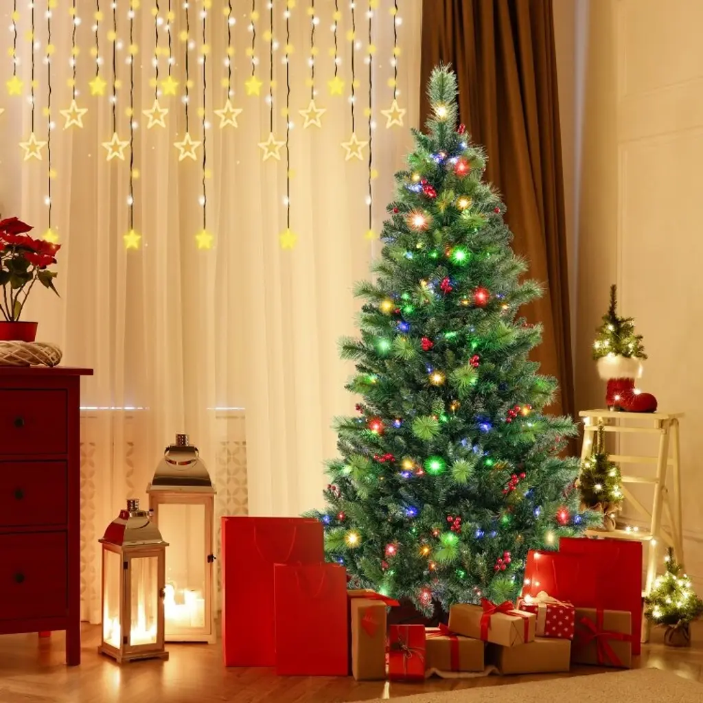 Pre-Lit Artificial Christmas Tree With Led Lights - 6 Foot