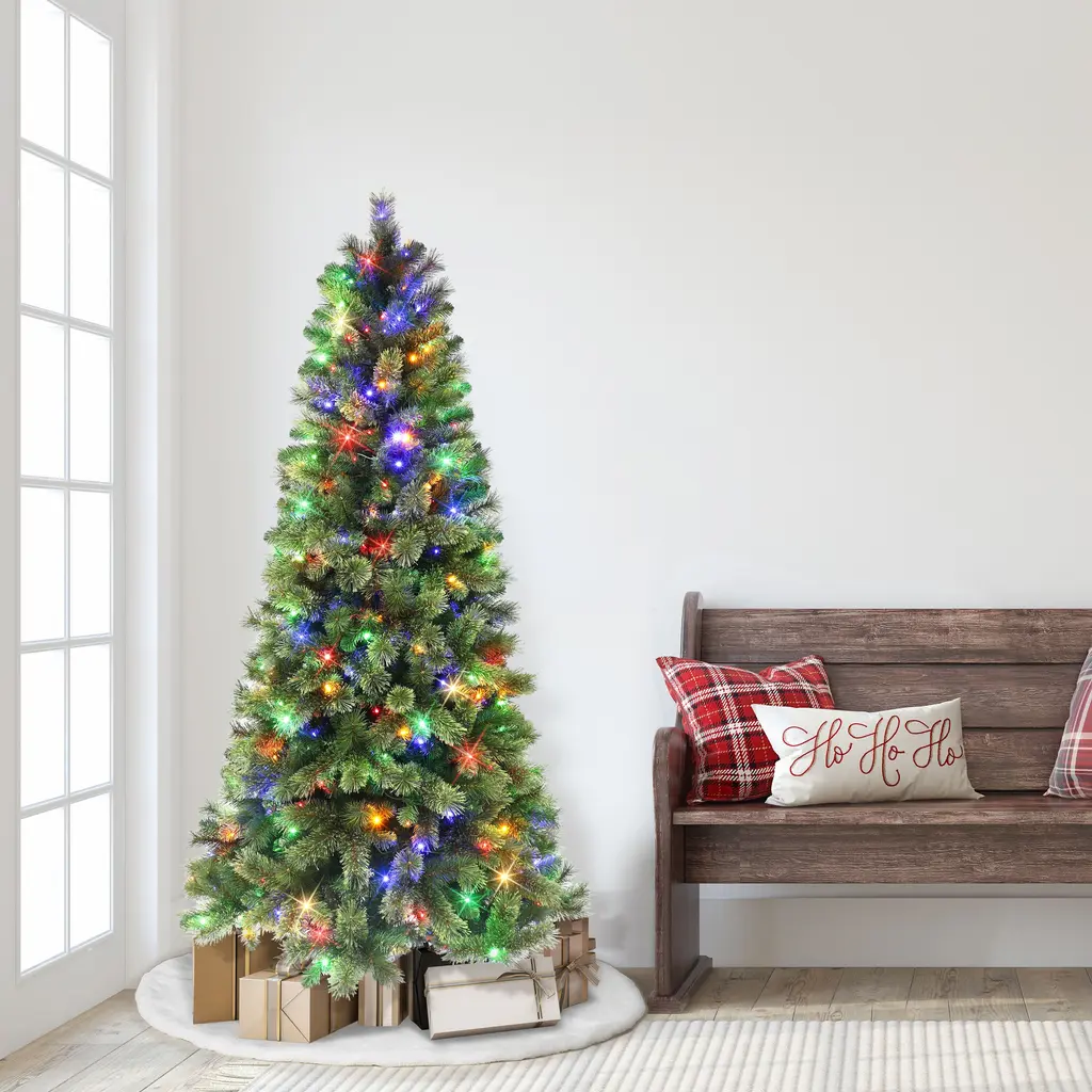 Pre-Lit Artificial Christmas Tree With Multicolored Led Lights - 5 Foot