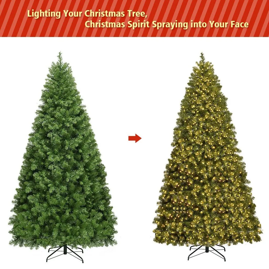 SpecificationsKey Features● Eco-friendly Material: The blades of this Christmas tree are made from high-quality PVC material, which not only makes the tree looks more real and more full but also adds the anti-crush capacity to the tree. ● Auto-spread and Close Up Design: If you doubt your hands-on ability, this Christmas tree is the best choice for you. Assembling this tree only requires a few steps. All branches will drop to the designed place after the tree set up, and will close up automatically for storage. ● Thick And Realistic Tree: Composed with strong metal trunk and plenty of heads, this Christmas tree looks full and realistic. Embellished with many shiny led lights, this is an indispensable warm decoration to brighten up the atmosphere for the holiday season. ● Pre-lit Led Lights: This Christmas tree is pre-lit with low voltage LED lights. These led lights are energy-efficient and long-lasting. The pre-lit design saves your time to set up electric lines, you just need to put your favorite decorations on the tree. ● Metal Stand: Goplus Christmas tree uses a metal stand instead of a cheap plastic stand, and add a plastic cover on the end of the stand. Through this design, all we want to achieve is to add the stability of the tree and protect your floor.Description