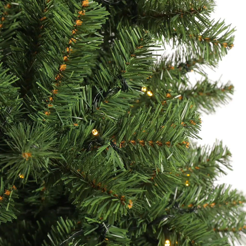 [NATURAL LOOK AND FEEL]: Our ultra-realistic pre-lit branches make this tree look extremely lifelike. With 1000 branch tips, you will be sure this full bodied tree looks real from near and far.[SIMPLE SETUP AND STORAGE]: Convenient hinged branches and pre-strung lights allow this fir tree for easy setup and disassembly.[HIGH QUALITY MATERIAL]: The PVC material is non-flammable and non-allergenic, it is safe to replace the real thing.[STURDY METAL STAND]:Durable, folding steel base can prevent your tree from breakage and provide stability to keep your tree standing all season.[EASY ASSEMBLY AND STORAGE]:Disassembles into 3 sections and foldable metal stand allow for easy assembling, dismantling, and storage.