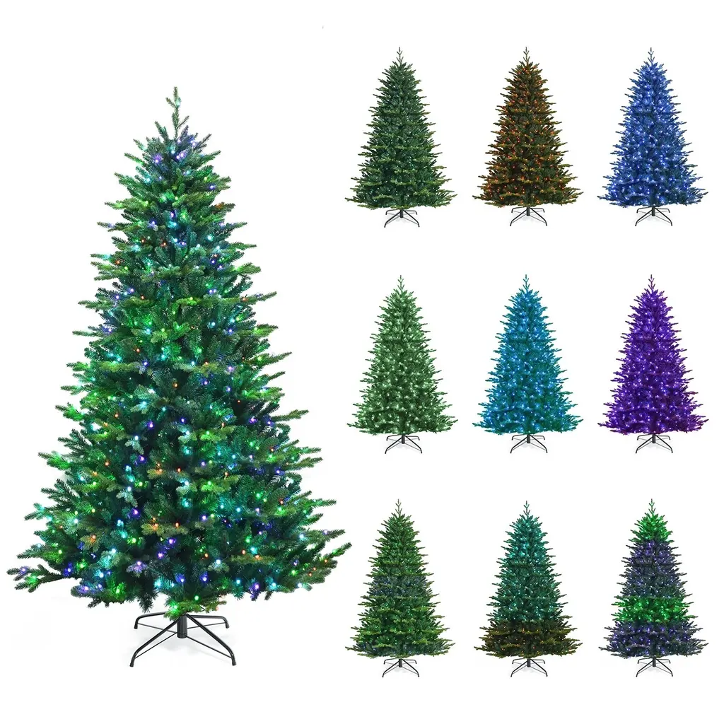 SpecificationsKey Features● Ulti-purpose Christmas Tree: The pre-lit Christmas tree, which measures 6 feet tall, is characterized by its elegant layers of branches. From a distance, it looks as natural as a real cedar tree. Except for LED lights, there's no other ornaments on it. So you can decorate it with family and friends according to your imagination. ● Leafy Branch Tips in Two Types: The total amount of Christmas tree branch tips is 1740, including 786 PVC tips and 954 PE tips. All of them are made of odorless, non-toxic and recyclable new material. And the dark green PVC tips and light green PE tips integrate with each other very well, making the tree full-bodied and dense in appearance. ● 8-layer Color Changing LED Lights: This tree is equipped with 420 LED lights that are divided into 8 layers. If lights of one layer were burnt out, the lights of other layers wouldn't be affected and keep working. Therefore, you can enjoy the cool LED lighting show incessantly during your Christmas party. ● Multifunctional Remote APP Control: These LED lights with 16 colors support remote APP control provide great convenience in daily use. You can adjust light brightness, light color, glittering speed to customize your preferred lighting mode. Or you can choose a preset lighting mode among 15 choices. Set lighting time from 4 hours to 16 hours according to your needs. ● Stable Structure with Easy Assembly: This LED Christmas tree is supported by a robust metal stand to ensure its stability. With separated sections and hinged branches, the tree can be put together and expanded without much efforts. After exciting Christmas parties, you can detach the tree into 3 sections to save storage space.Overview-An eye-catching 6ft/7ft/8ft tall Christmas tree for residential and commercial decoration -Leafy and full-bodied Xmas tree consists of 1740/2324/2956 PE and PVC branch tips -100% new PE and PVC tips are odorless, nonflammable and non-toxic -420/540/670 color changing LED lights are able to create different atmospheres -App controlled lights support you to customize your wanted lighting modes -Hinged branches and separated sections simplify assembly processes -LED lights of each layer work independently and won’t be affected by other lights