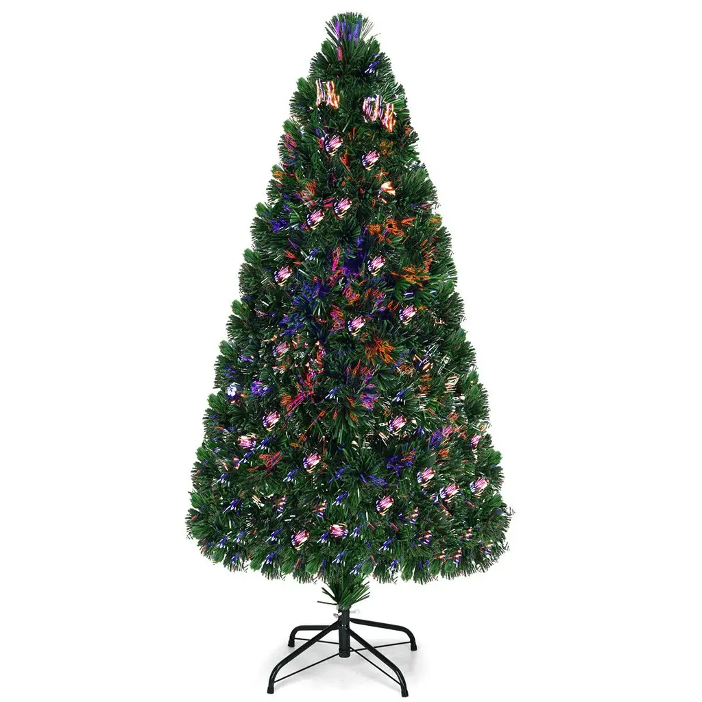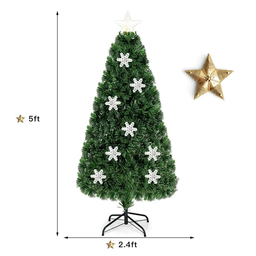 Pre-Lit Fiber Optic Christmas Tree With Led Lights And Snowflake Decor - 2.4' X 2.4' X 5' - Green