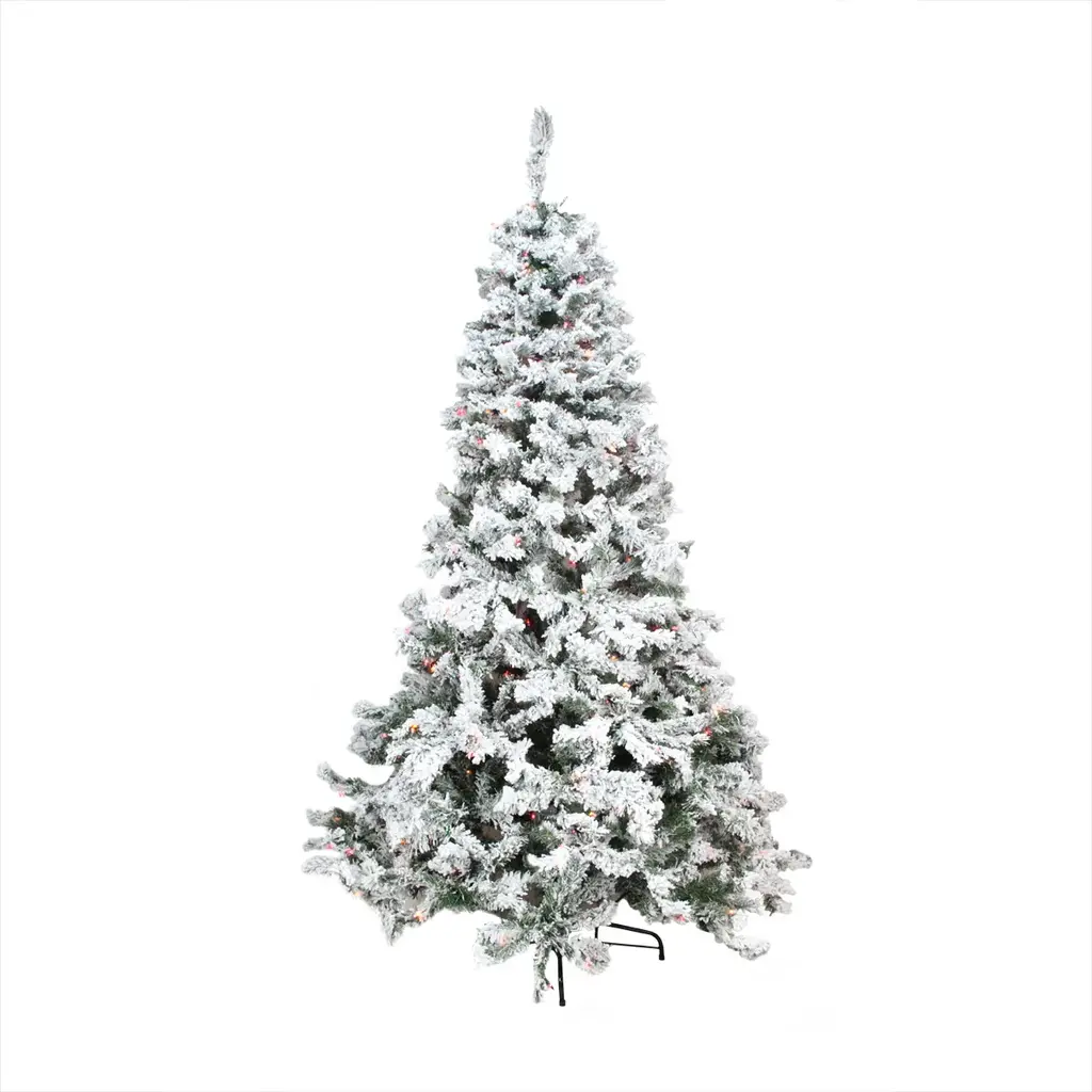 Pre-Lit Heavily Flocked Pine Medium Artificial Christmas Tree - Multicolor Lights - 9 Foot