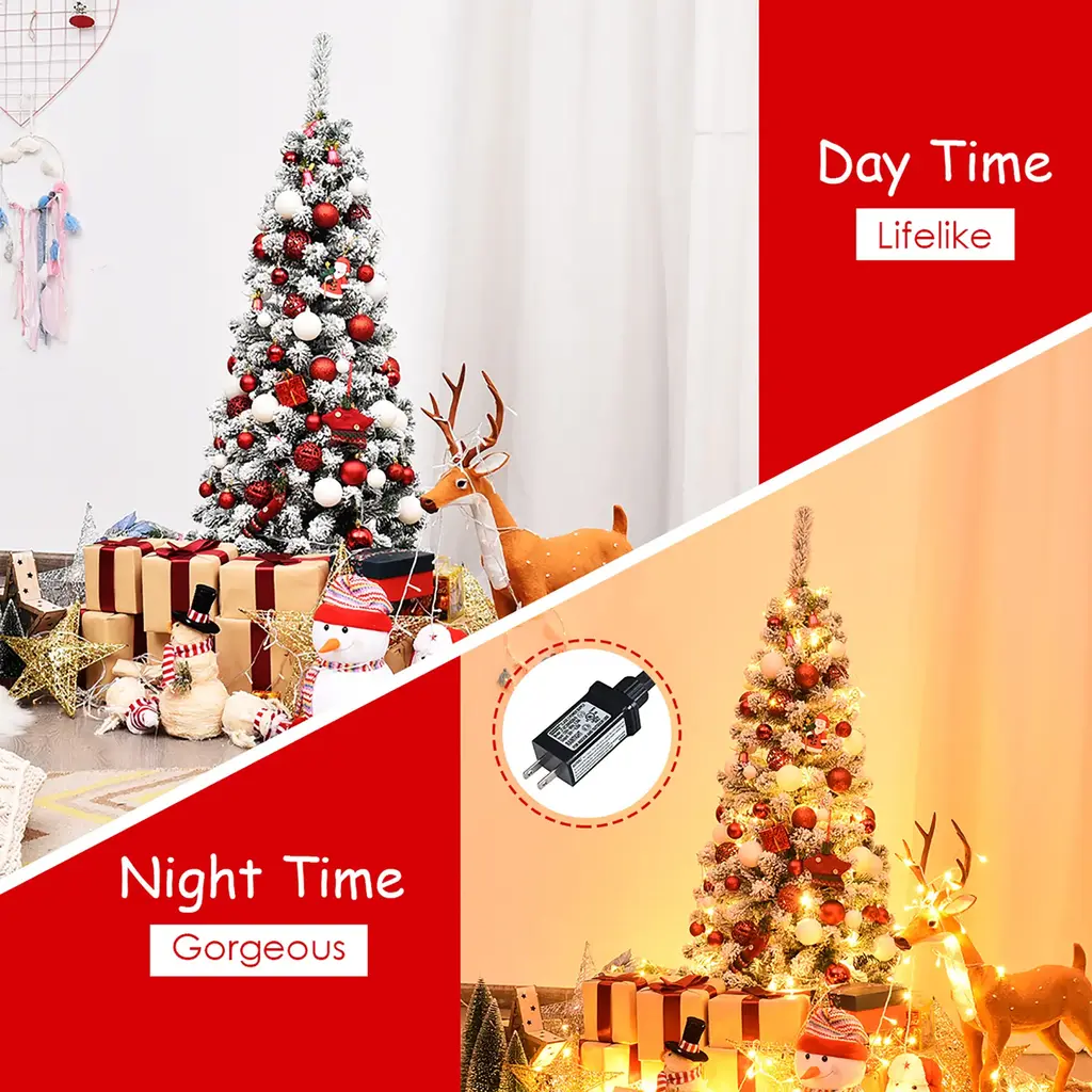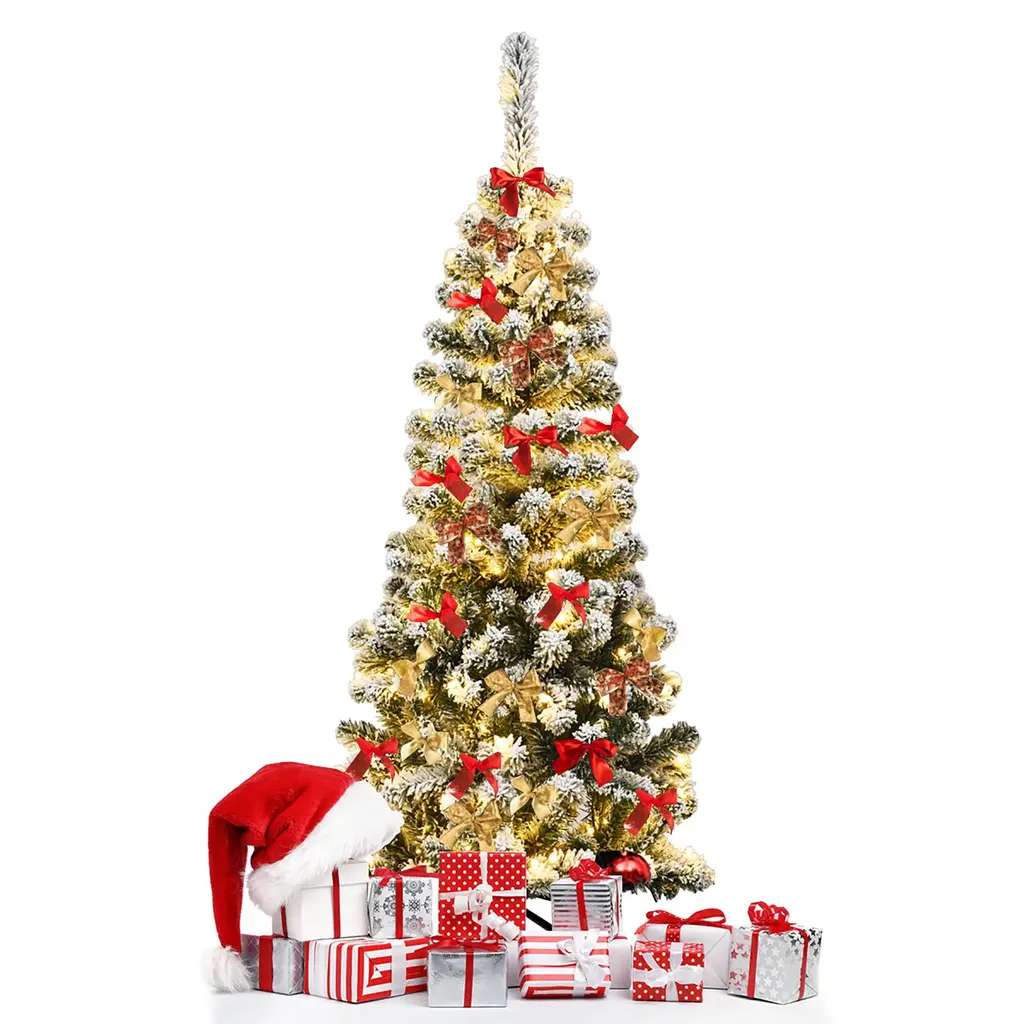 Pre-Lit Hinged Pencil Tree Artificial Snow Flocked Christmas Tree - 4.5 Foot