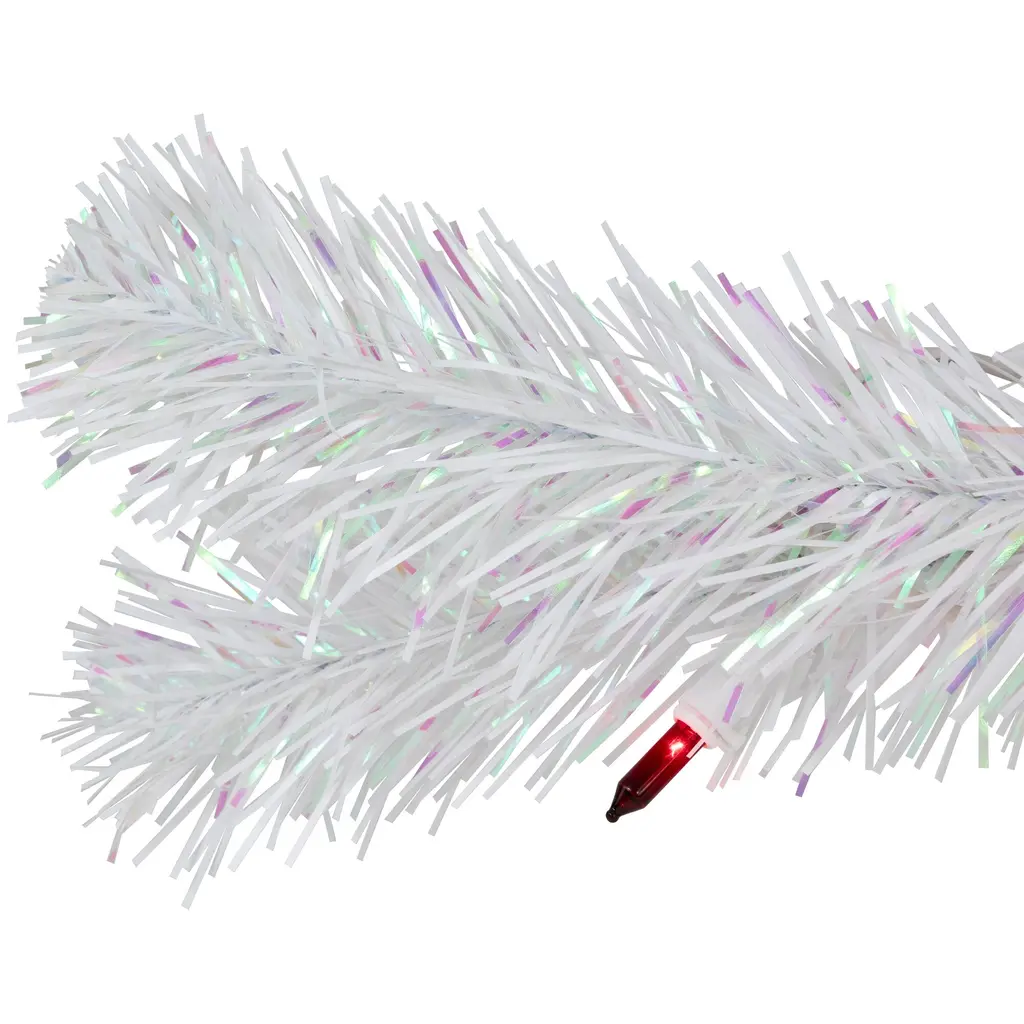 Experience the enchantment of the holiday season with this charming artificial Christmas tree. Its compact size makes it perfect for adding a touch of festive magic to any space. Adorned with a captivating blend of matte white and clear iridescent needles, this tree offers a unique and sophisticated twist on traditional holiday decor. The multi lights add a playful yet elegant shimmer and the iridescent needles beautifully reflect the soft glow. Product features: Pre-lit with 35 multi-color lights Multi-color consists of red, green, blue, orange and purple bulbs Bulb size: mini Bulb type: incandescent 64 tips 2.5" wide branch tips 27" white lead cord Medium profile tree Easy assembly: simply connect the stand legs to the base Additional product features: Light sets on tree are UL listed for indoor or outdoor use, however, the tree itself is recommended for indoor use only If one bulb burns out, the rest will stay lit Lights are equipped with Lamp Lock feature, which makes them replaceable, interchangeable and keep them from falling out Includes a white plastic tree stand Wire gauge: 22 120 volts, 60 hertz,.12 amps, 14.4 watts Dimensions: 2' high (from the base of the stand to the top of the tree) 16" base diameter (at the widest point) Material(s): PVC/plastic/glass bulbs/wire Note: Branches are compressed for shipment, and need to be fluffed out upon arrival to look like the photo.