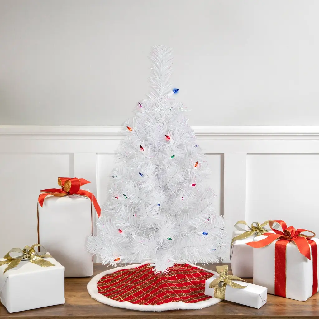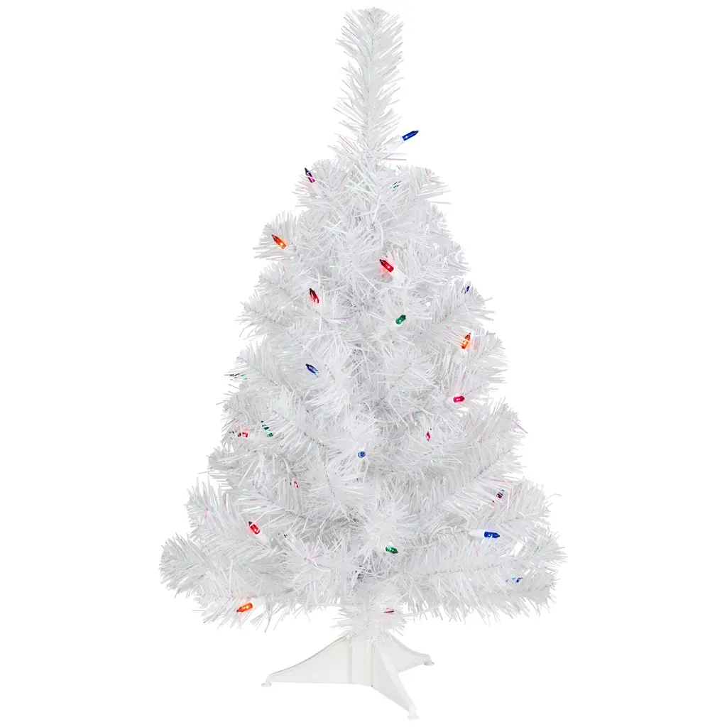 Pre-Lit Medium Rockport White Pine Artificial Christmas Tree - 2' - Multi Lights - 2 Foot - White - 3 Foot