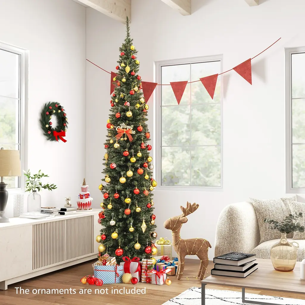Pre-Lit Pencil Artificial Christmas Tree With Warm White Led Lights - 9 Foot