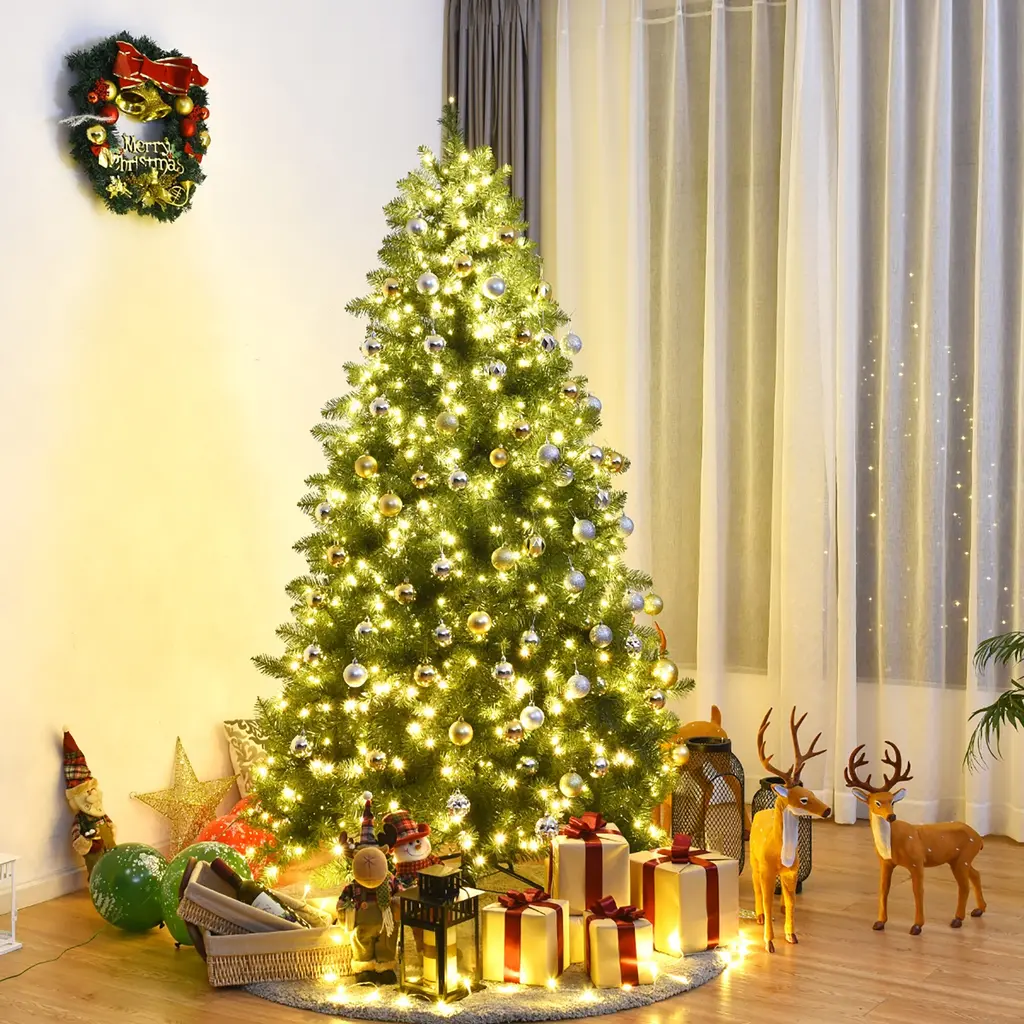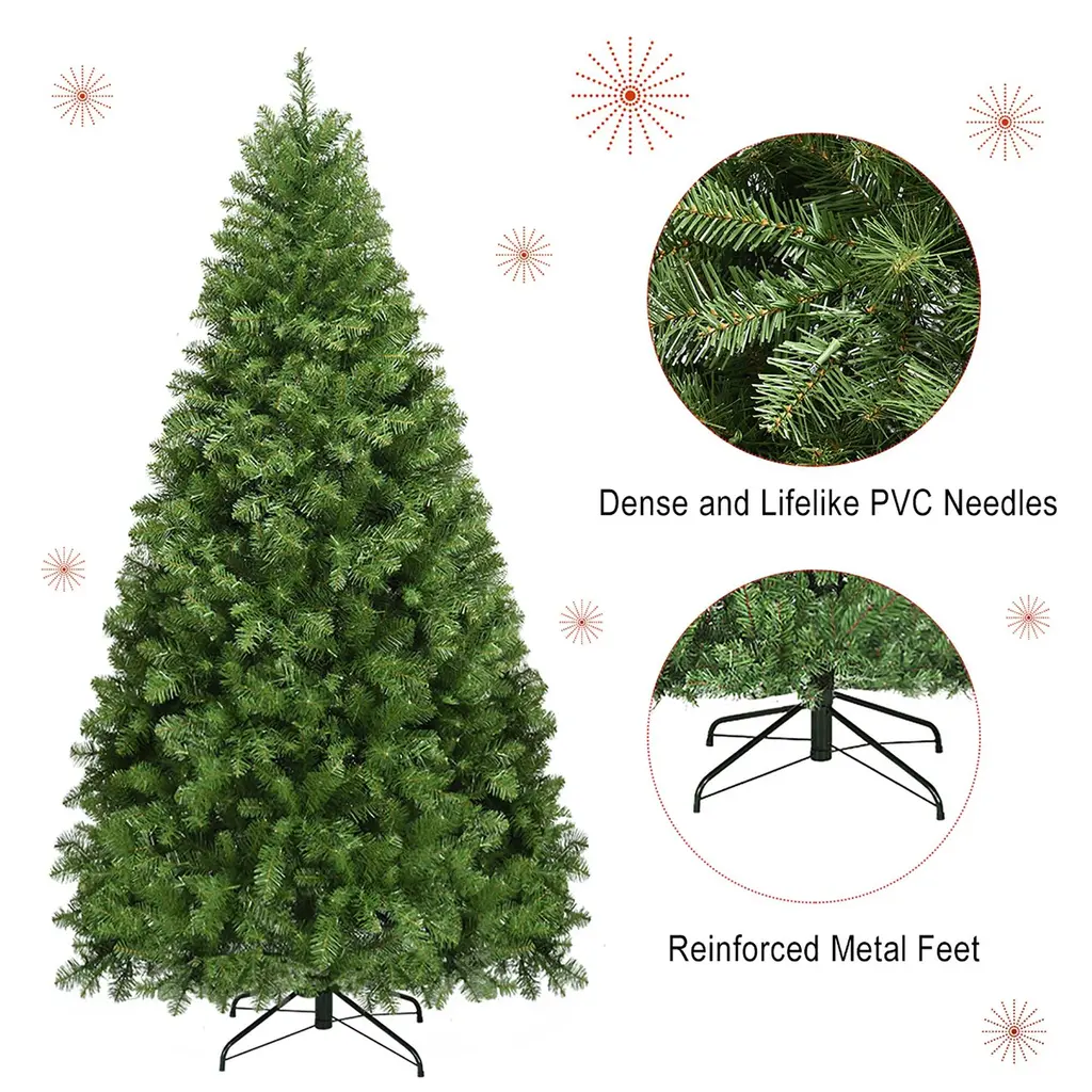 Pre-Lit Pvc Artificial Christmas Tree With Led Lights And Metal Stand - 8 Foot