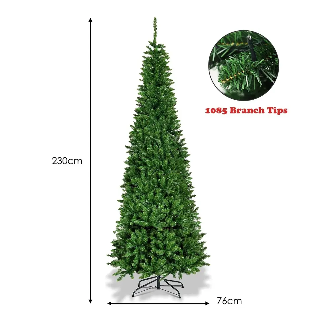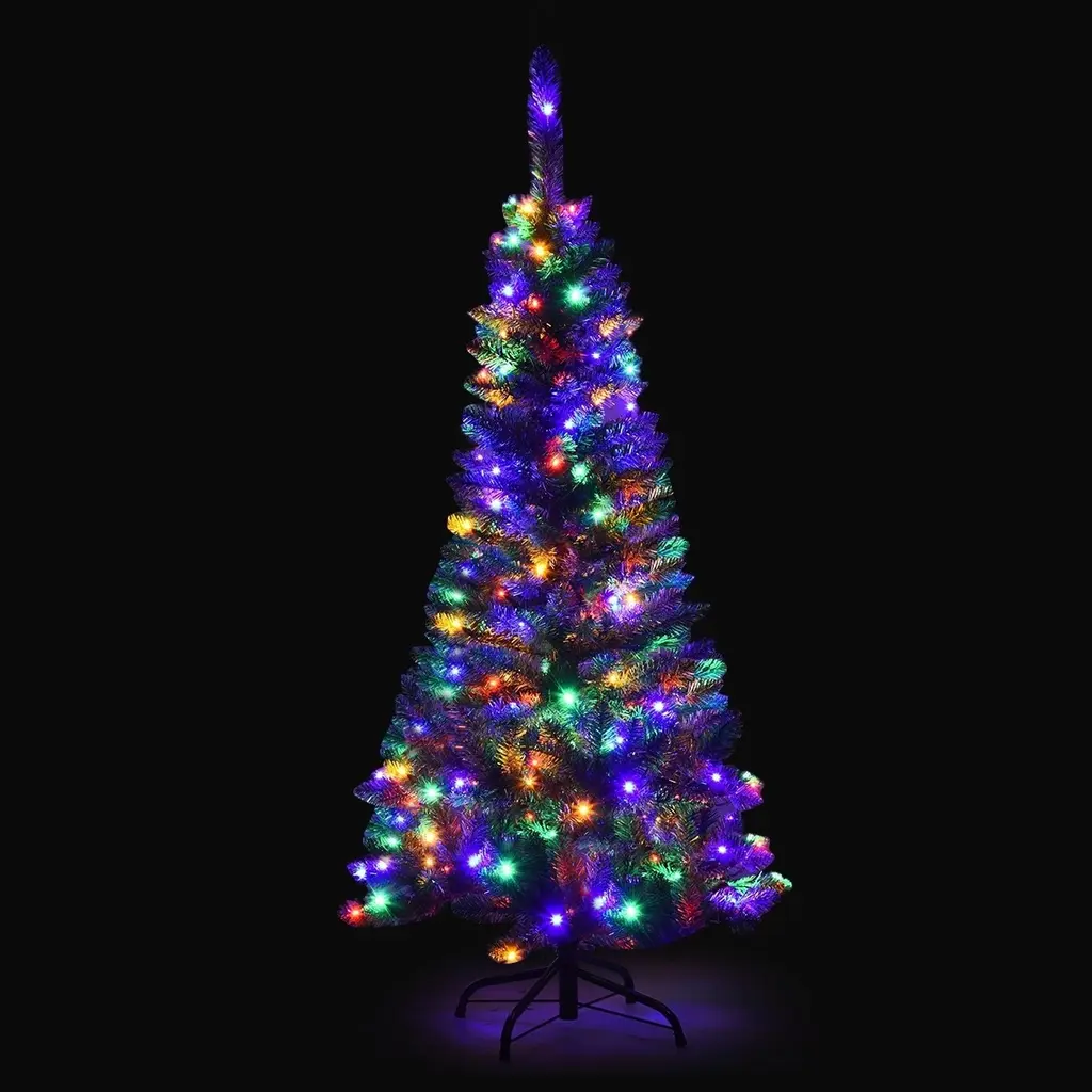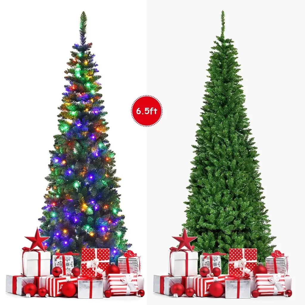 Pre-Lit Pvc Artificial Pencil Christmas Tree Colorful Light With Stand - 7.5 Foot