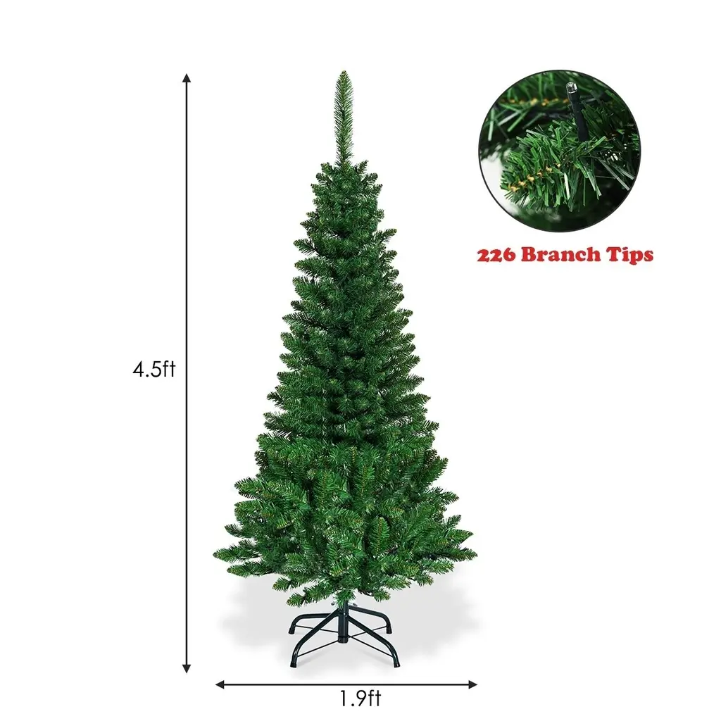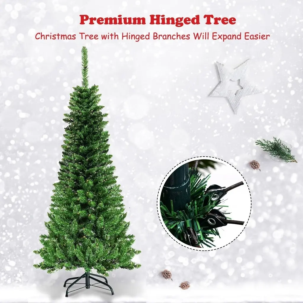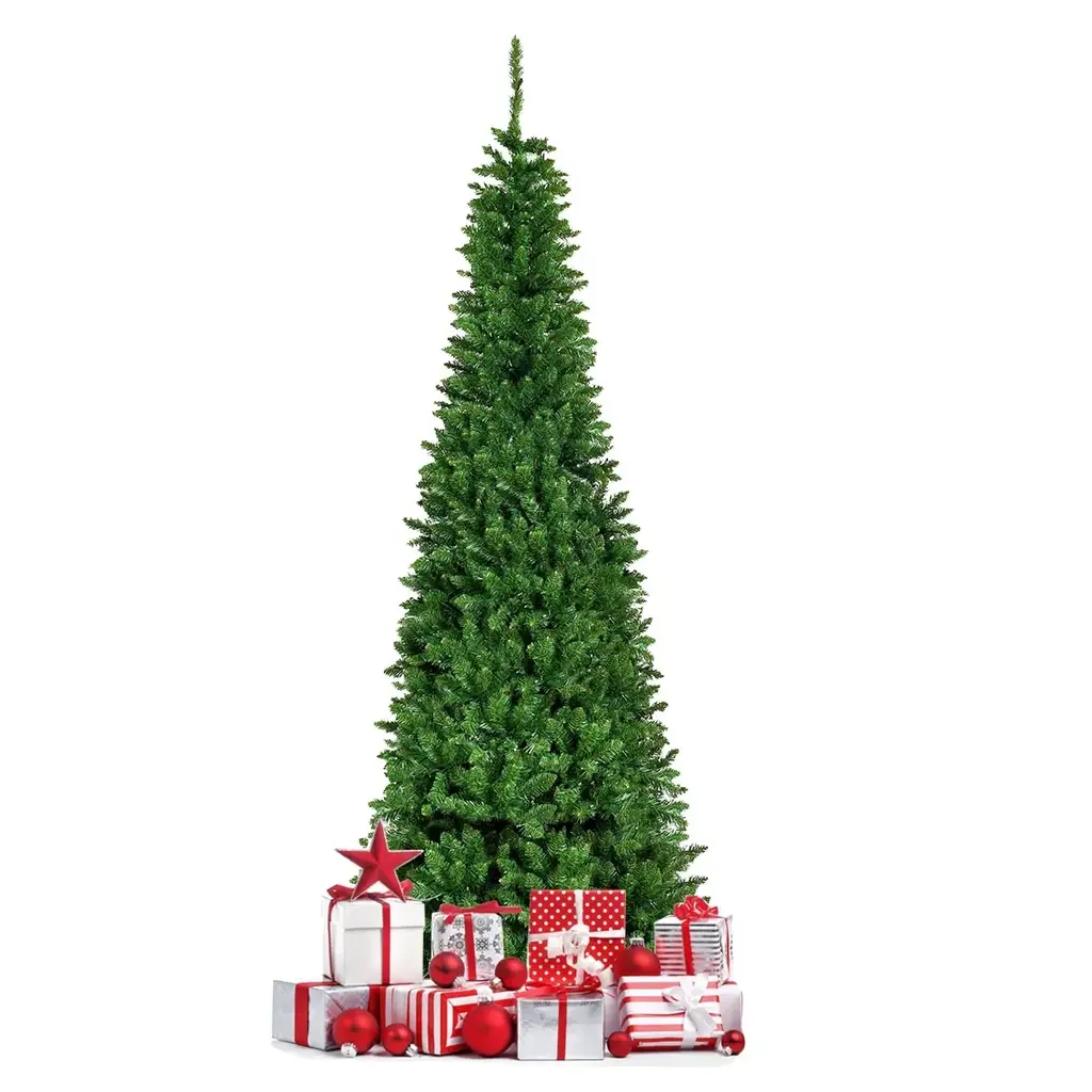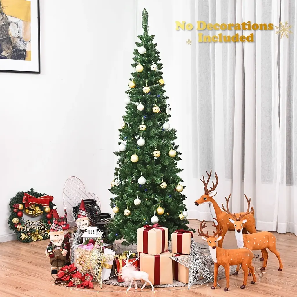 Pre-Lit Pvc Artificial Pencil Christmas Tree Colorful Light With Stand - 7.5 Foot