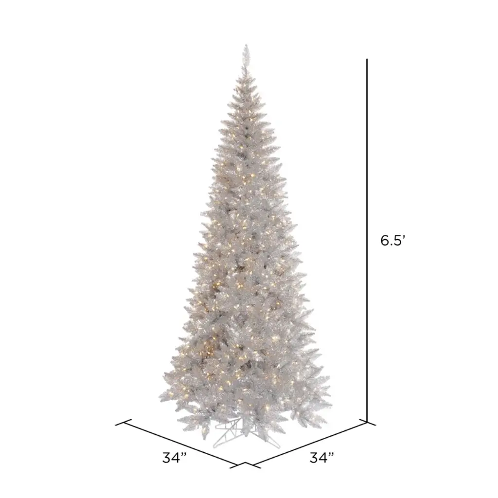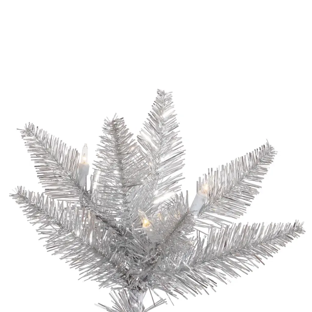 Pre-Lit Silver Tinsel Modern Artificial Fir Christmas Tree Slim