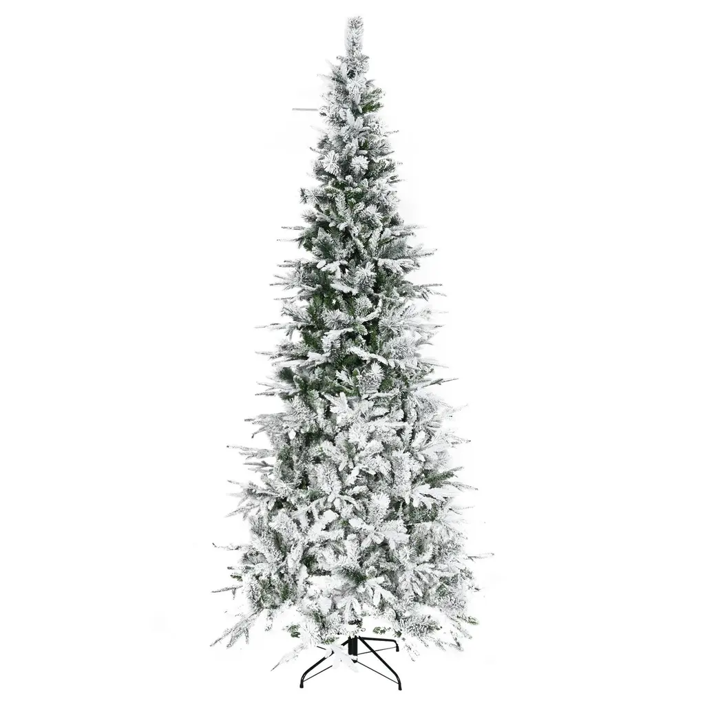 This Snow Flocked Artificial Christmas Tree creates a winter wonderland in your home or office with its beautiful frosted appearance. Available in 5ft, 6ft, 8ft, and 9ft sizes, it features a hinged design for easy assembly. The pre-attached branches open automatically, requiring minimal fluffing. Made from durable plastic, this tree is flame-retardant for added safety and supported by a sturdy foldable metal stand, ensuring it stands tall throughout the holiday season.Fluff branches properly for a fuller look. Store in a cool, dry area after the holiday season to preserve its shape and appearance.