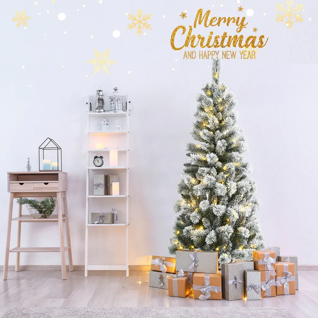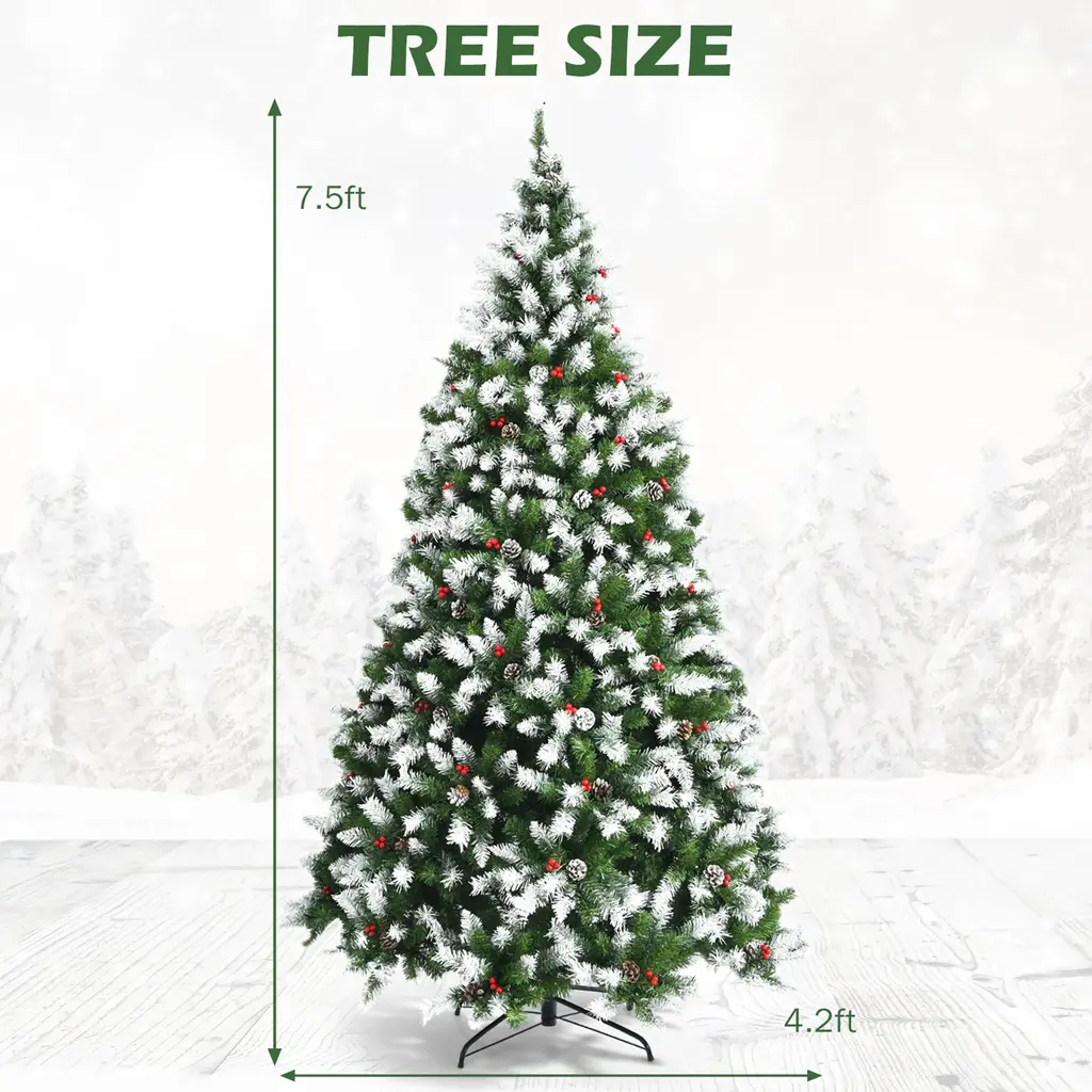 Add charm to your Christmas holiday with this eye-catching snow flocked Christmas tree! Combining superior materials with exquisite craftsmanship, the Christmas tree is not only wondrous and realistic but also resistant to pressure and not deformed easily. Equipped with many LED lights and there are 9 lighting modes for you to choose, so you can enjoy an exciting lighting show at home to cheer up the holiday atmosphere. Come and but it to share the holiday happiness with all your loved ones!Features:5Ft Christmas Tree6Ft Christmas Tree7.5Ft Christmas Tree8Ft Christmas TreePackage Includes: