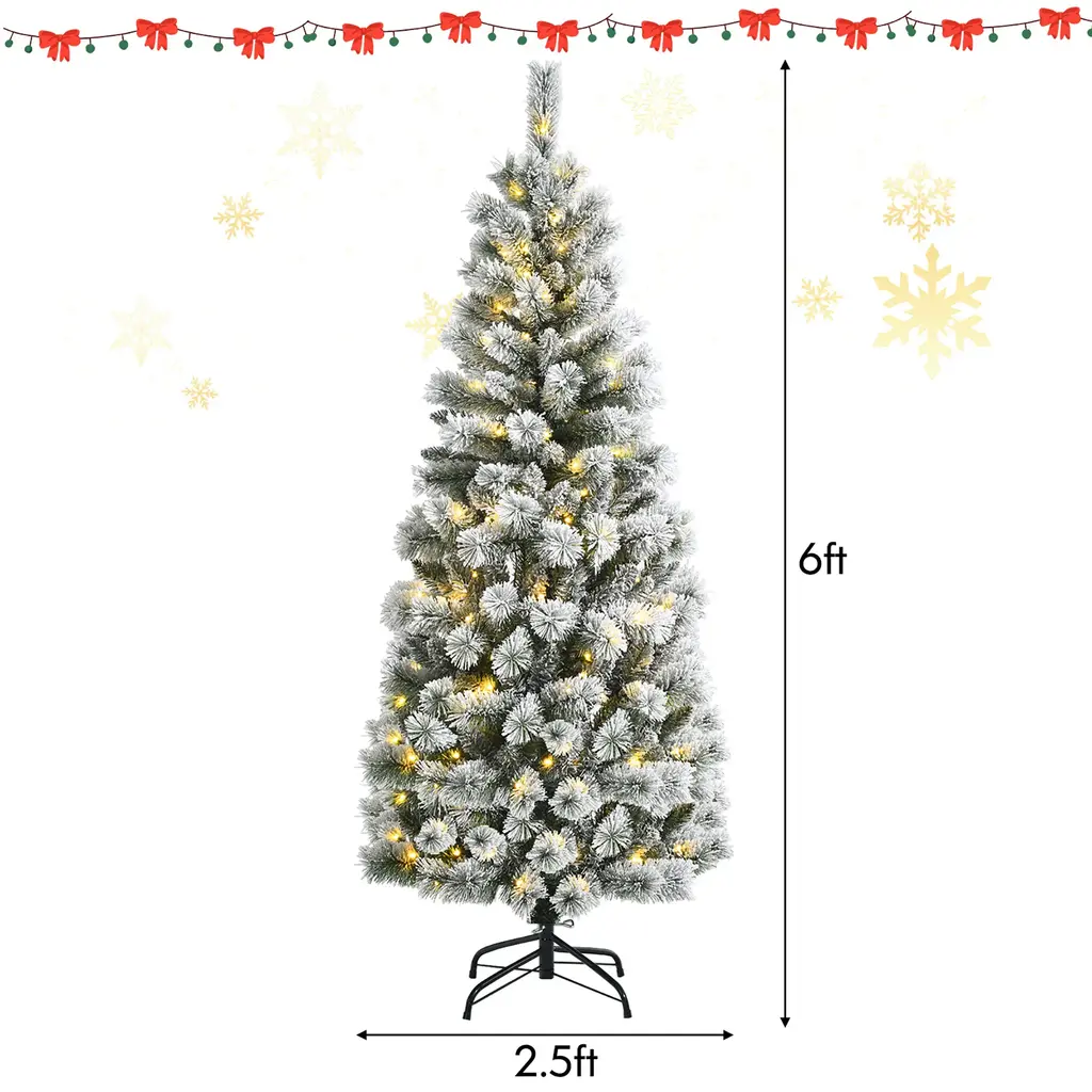 Add charm to your Christmas holiday with this eye-catching snow flocked Christmas tree! Combining superior materials with exquisite craftsmanship, the Christmas tree is not only wondrous and realistic but also resistant to pressure and not deformed easily. Equipped with many LED lights and there are 9 lighting modes for you to choose, so you can enjoy an exciting lighting show at home to cheer up the holiday atmosphere. Come and but it to share the holiday happiness with all your loved ones!Features:5Ft Christmas Tree6Ft Christmas Tree7.5Ft Christmas Tree8Ft Christmas TreePackage Includes: