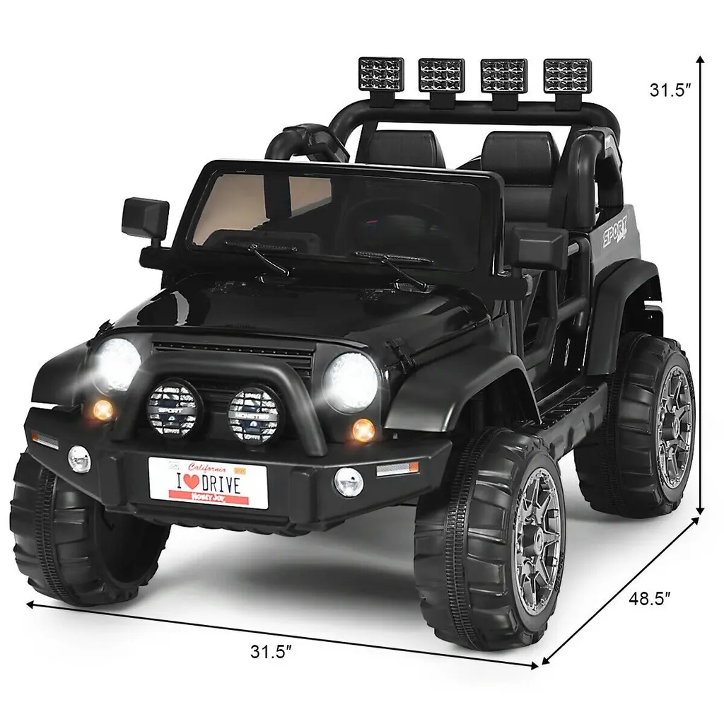 Premium 2-Seater 12v Ride-On Car Truck With Remote Control And Ample Storage Space-Black - 48.5" X 31.5" X 31.5" - Black