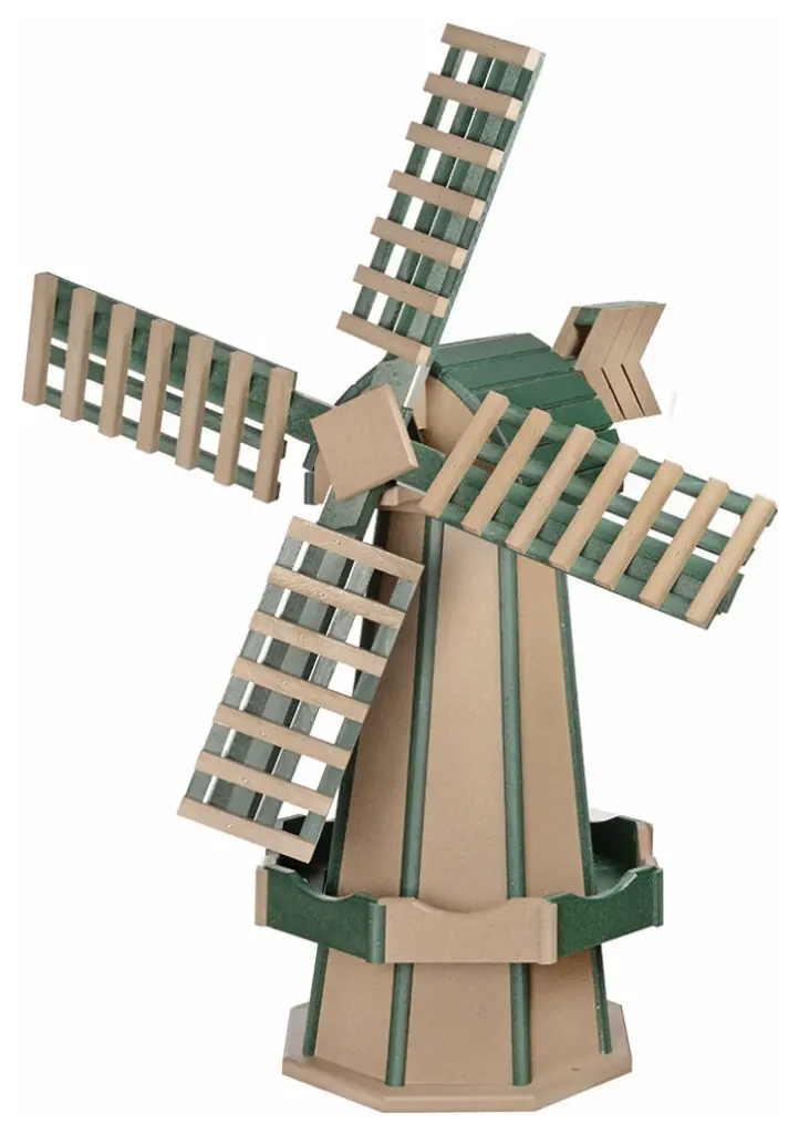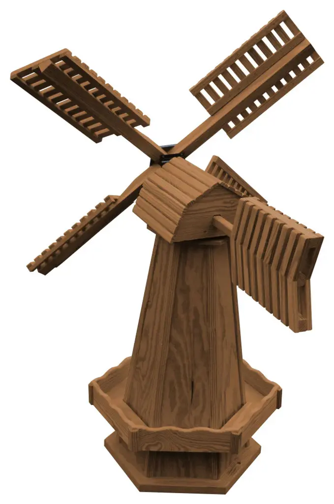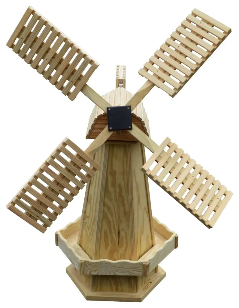Create a gorgeous center piece in any garden or on any porch with this gorgeous Amish-made Windmill! Our wooden windmills are constructed of durable exterior plywood with three coats of polyurethane to protect your windmill.Amish Made in the USA High quality materials for durability Digital colors may vary slightly from actual product color