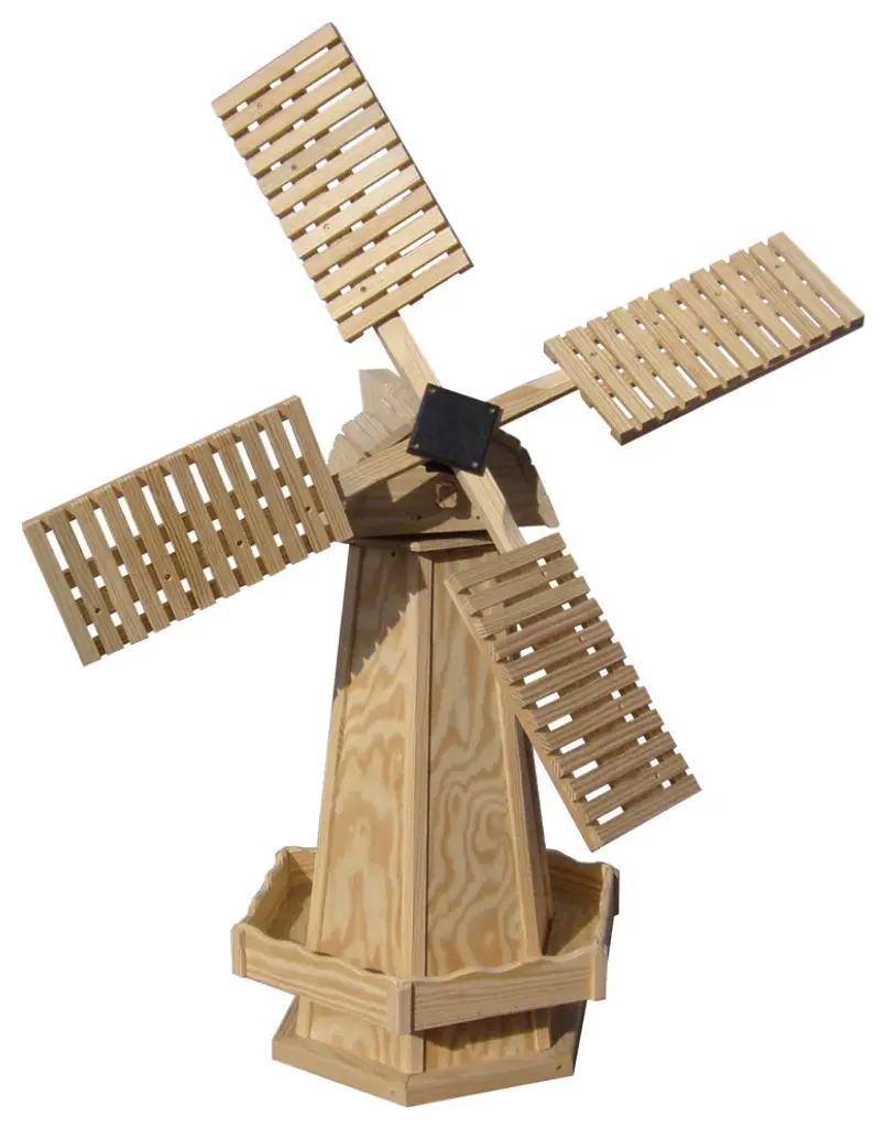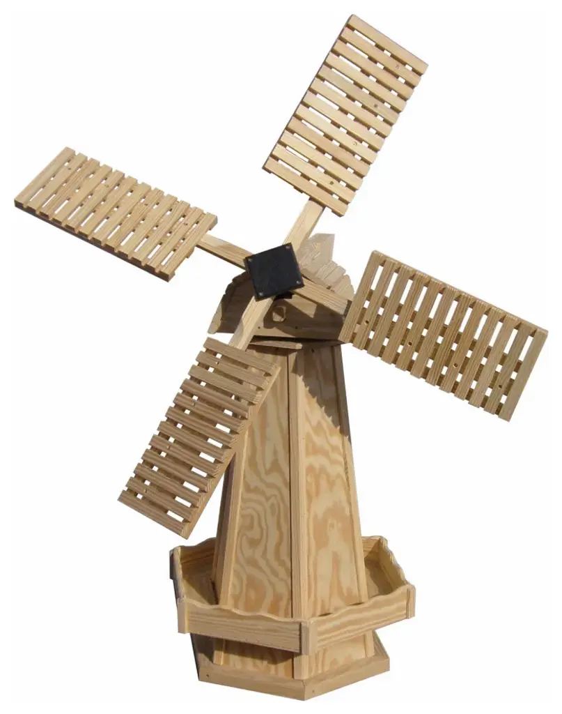 Create a gorgeous center piece in any garden or on any porch with this gorgeous Amish-made Windmill! Our wooden windmills are constructed of durable exterior plywood with three coats of polyurethane to protect your windmill.Amish Made in the USA High quality materials for durability Digital colors may vary slightly from actual product color