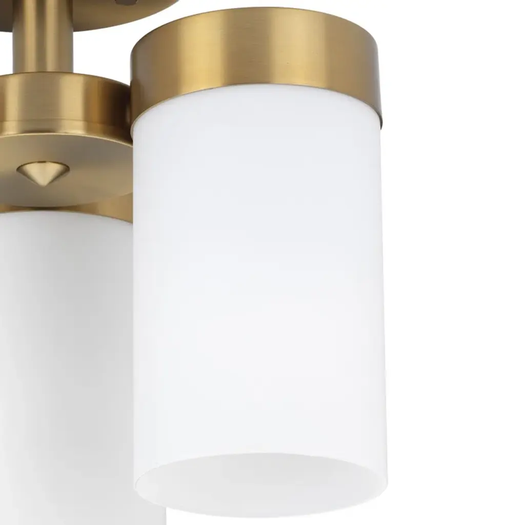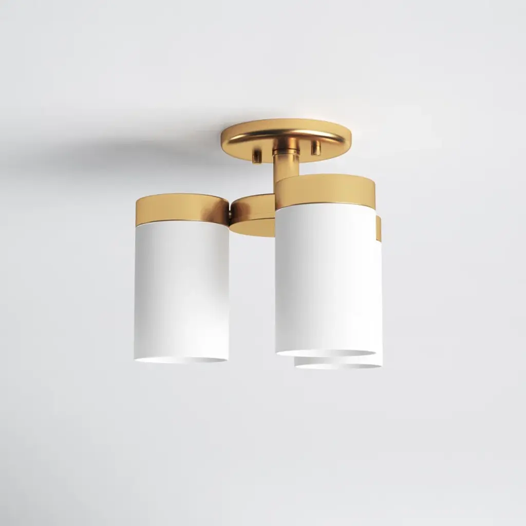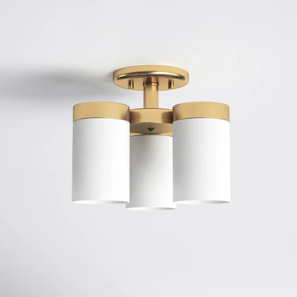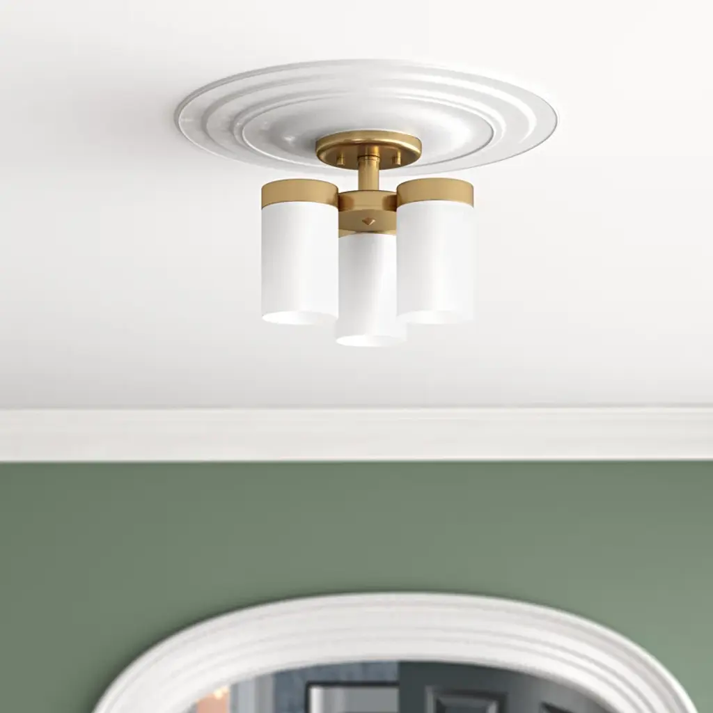 Crafted from metal, this flush mount comes awash in a metallic finish that works well in a variety of contemporary settings. Sure to turn heads and inspire compliments, it features 3 white glass cylinders that diffuse light from any 3 medium base bulbs up to 75 W (not included). Ideal for brightening up your space in eye-catching style, this design is compatible with LED bulbs *and* dimmer switches, so you can save electricity even as you set the mood!