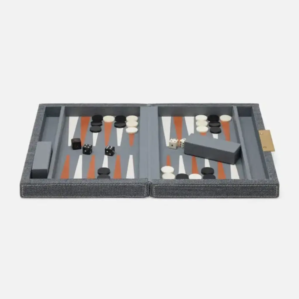 Preston Slate Blue Backgammon Small: 11"l X 8"w X 2"h