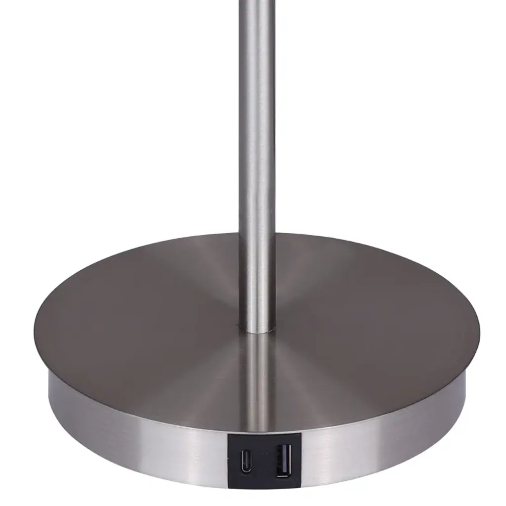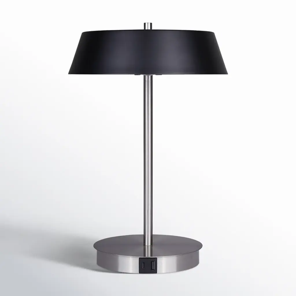 Pretoria 14 In. Integrated Led Brushed Nickel Table Lamp With Teal Metal Shade, On/off Touch, And Usb Chargeports