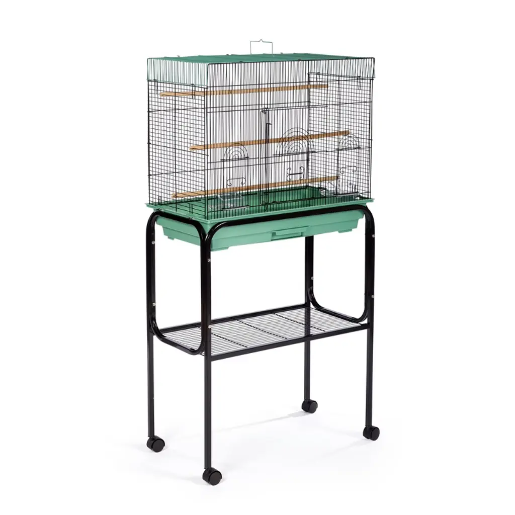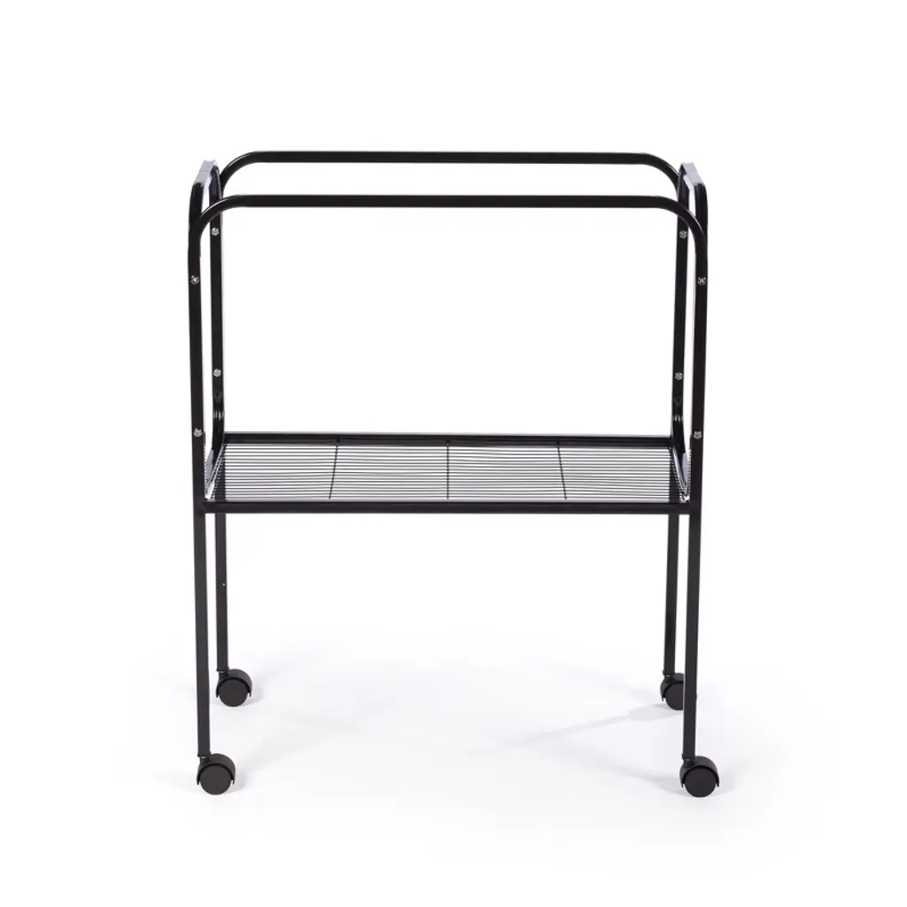 Prevue Pet Products Black Bird Cage Stand 446 has been designed for Prevue Flight Cages with a base of 26" L x 14" W. Includes bottom shelf for storing extra food, treats or cleaning supplies. Made of tubular steel with plastic casters for easy mobility, the stand measures 26" long, 14" wide and 31 3/4" high. The 446 Cage Stand is compatible with Prevue Flight Cages including cage models 91340, SP1804TR-1, SP1804TR-2, SP41618-1, SP41618-2, SP41615-1, SP41615-2, SP1804-1, SP1804-2, SP1804-3, SP1804-4, SP42614-1, SP42614-2, SP42614-3, SP42614-4.