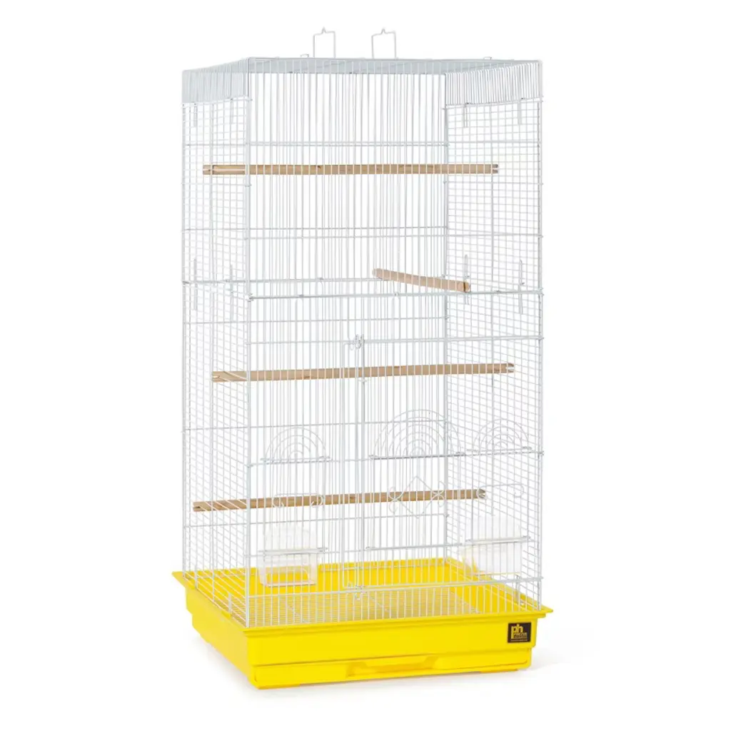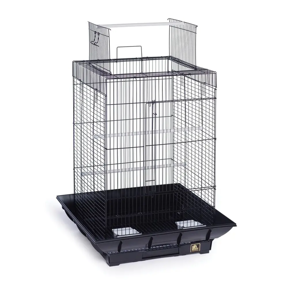 Prevue Pet Products Clean Life Bird Cage Red & Black SP850R/B has been designed with form, functionality and affordability in mind. This remarkable cage features an integrated seed guard to cut down on mess and scattered debris, while the lower cup placement and an innovative removable tray help your bird thrive in a cleaner living environment. Elevated cage mesh also helps prevent debris from getting stuck at catch points along the bottom of the cage. Perfect for small to medium sized birds, two plastic cups and two perches are included. Our Clean Life Cage measures 17.5" long, 17.5" wide and 24" high with 1/2" wire spacing. Base measures 22" Long and 22" Wide.