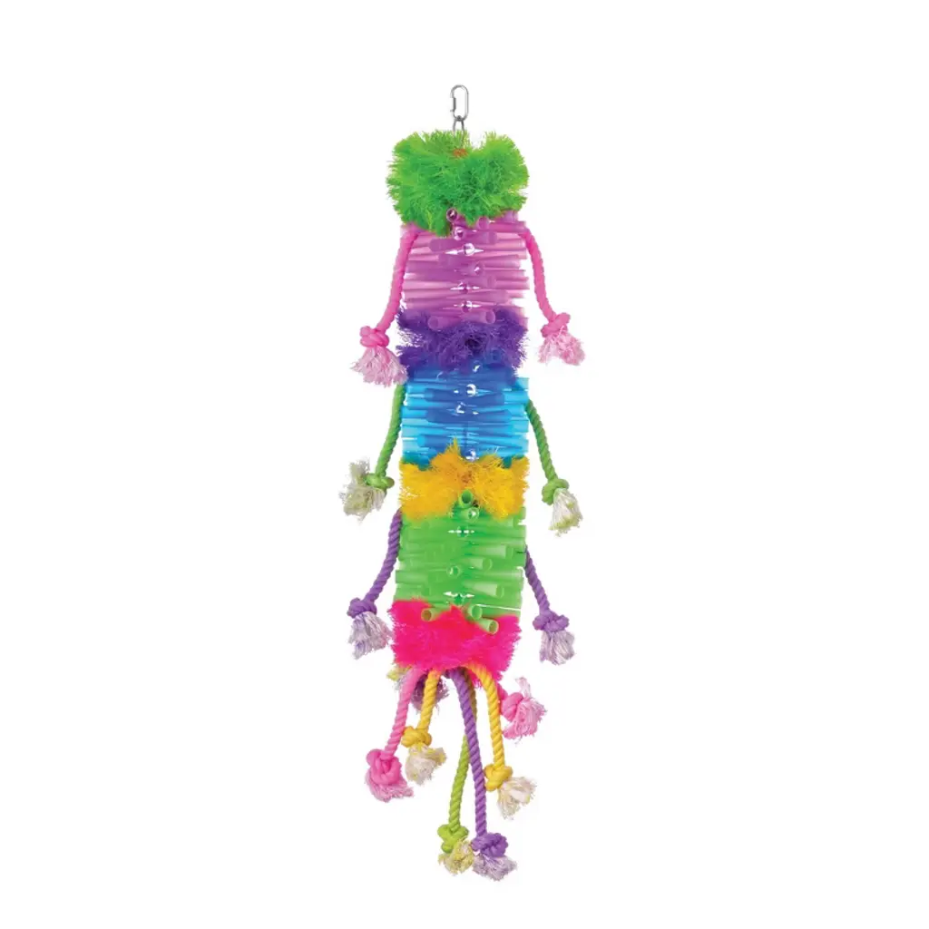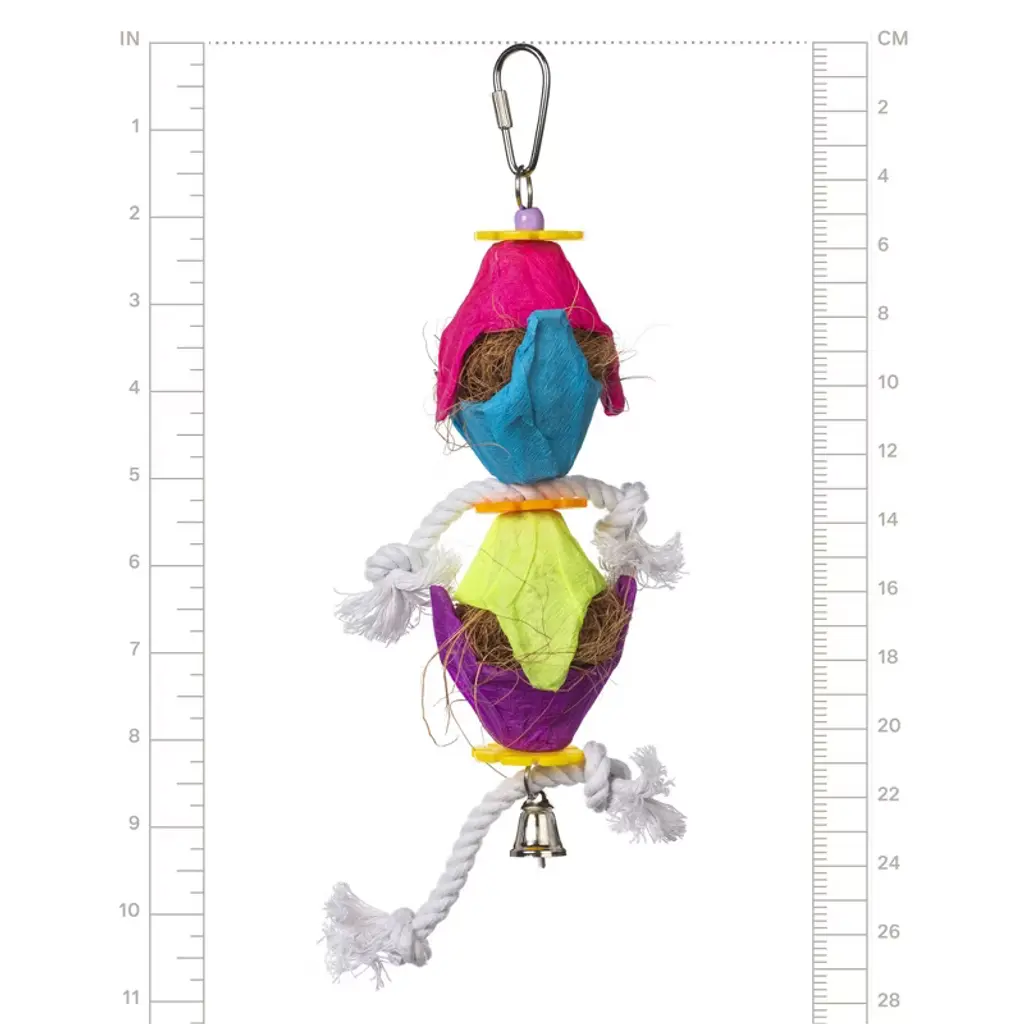 Playfuls Eggman 62619 from Prevue Pet Products is a multi-sensory activity toy, designed to entertain and engage birds on all levels. Forage and Engage toys emphasize a bird's need to search, root, uncover, extract and collect. Have fun with your pet by adding special treats to this toy - it will delight and engage your feathered friend! Watch your bird play with this toy as it dances, swings and the bell makes a soft tinkling noise. Toy can be refilled as needed. Hand-made in Malaysia, this pet-safe toy is made using a quick-link, sisal fiber, stainless steel wire, colored paper, cotton rope, plastic beads, bird-safe bell and egg tray. Measures approximately 10 1/2" high by 3 1/4" long and 2 1/2" wide. Toy can vary slightly in shape and size. As always supervise your pet at play. Inspect toy regularly and replace when used or worn.