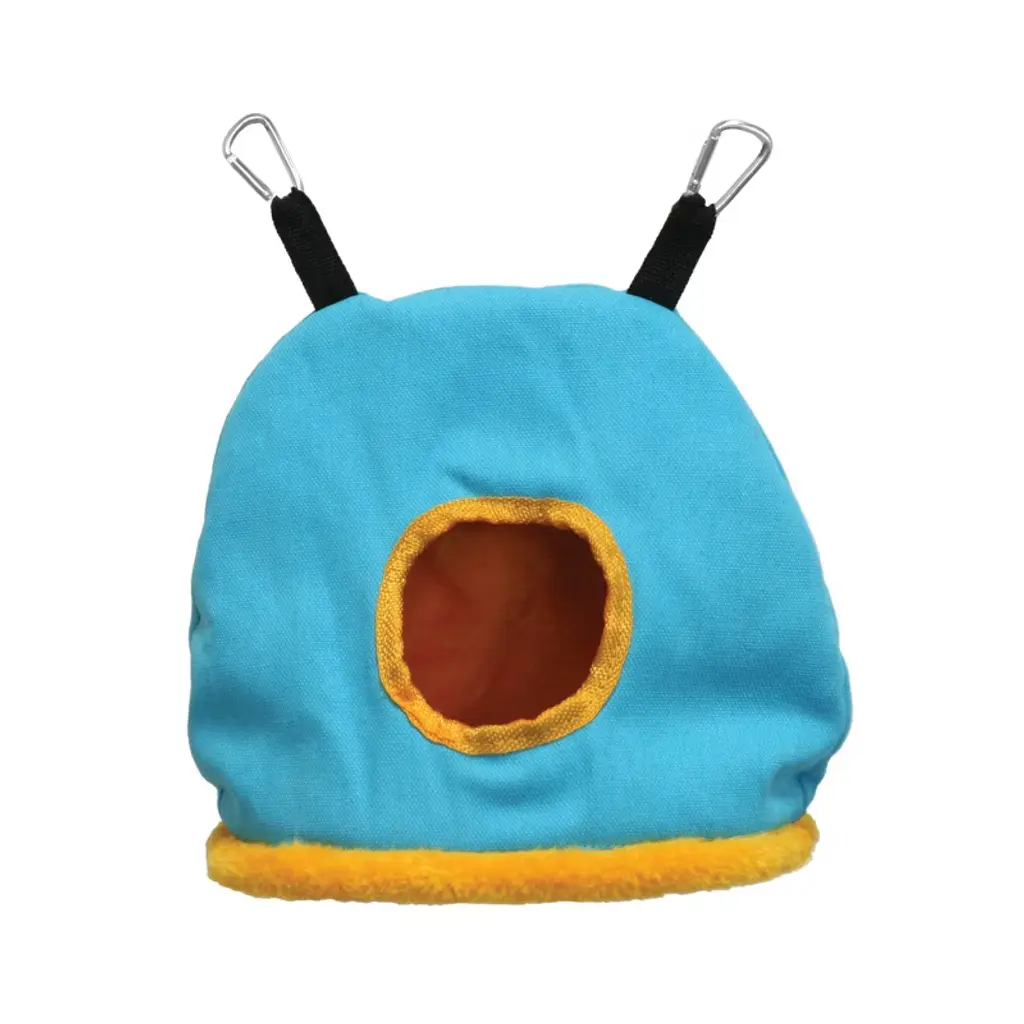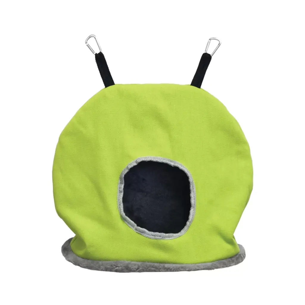 Prevue Pet snuggle sack 1169G has a warm, soft fleece interior to protect pets from cold drafts and attaches easily to the cage with two clips. The cozy interior provides a great place for pets to sleep, play and hide. Available in green with contrasting trim and jumbo size. Gives birds a place to retreat. Plastic insert in fleece bottom lets the sack keep its roomy shape. Machine washable.Toy measures 8 1/4" Long, 6 " Wide and 11" High.