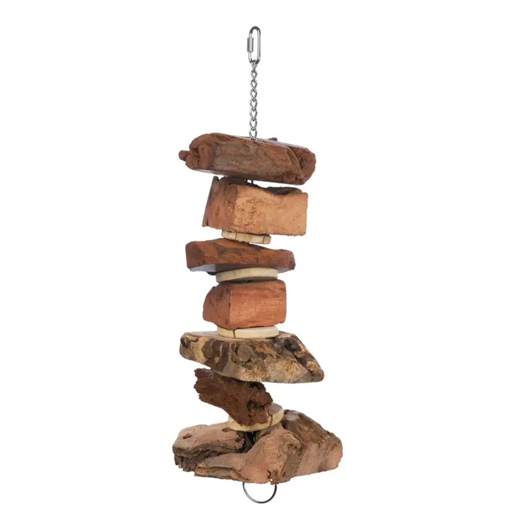 Prevue Pet Products Naturals Munch ‘N" Crunch 62822 is handmade from 100% natural, sustainable, materials providing your bird with mental stimulation and rugged physical play. Made with assortment of wood this bird toy encourages foot and beak exercise. Toy connects easily to cage with quick-link attachments and is handmade - actual measurements may vary slightly. As always, supervise birds at play. Our Naturals Munch ‘N" Crunch 62822 bird toy is approximately 7 1/4" Long, 4 1/2" Wide, and 18" High. ideal for Small to Medium sized birds.