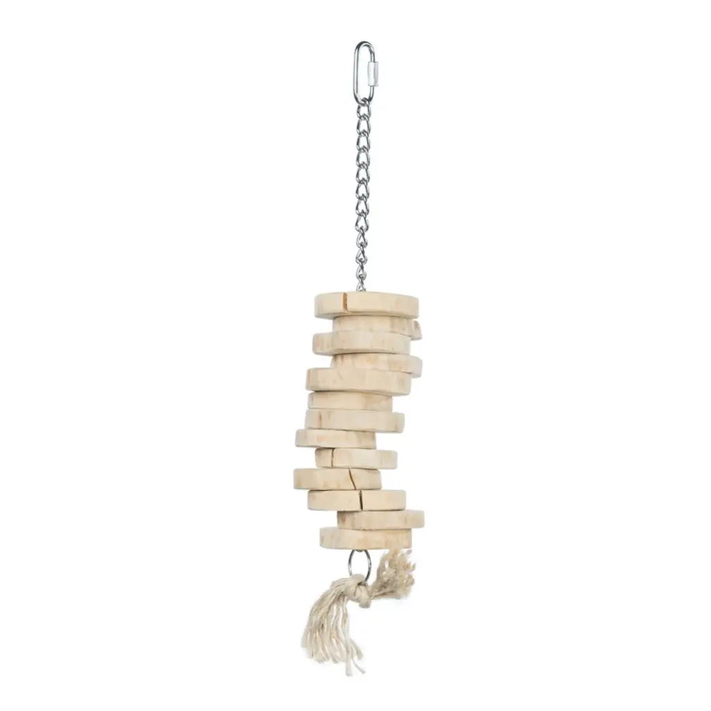Playfuls™ Shredding Stack 60247 Bird Toy from Prevue Pet Products is a versatile and engaging toy designed for small to medium-sized birds. This toy is meant to provide both physical and mental stimulation to keep your bird entertained and active. It offers various elements such as moving parts, balancing challenges, manipulative components, and materials for chewing. Engaging with these different aspects of the toy can contribute to your bird's overall well-being, both physically and mentally. Measures approximately 3" long by 2" wide by 13 1/4" high. Since the toys are handmade, there might be slight variations in shape and size. As a responsible pet owner, it's important to supervise your bird while they're playing with the toy. Regularly inspect the toy for any signs of wear or damage, and replace it when it's used or worn out to ensure your bird's safety and continued enjoyment.