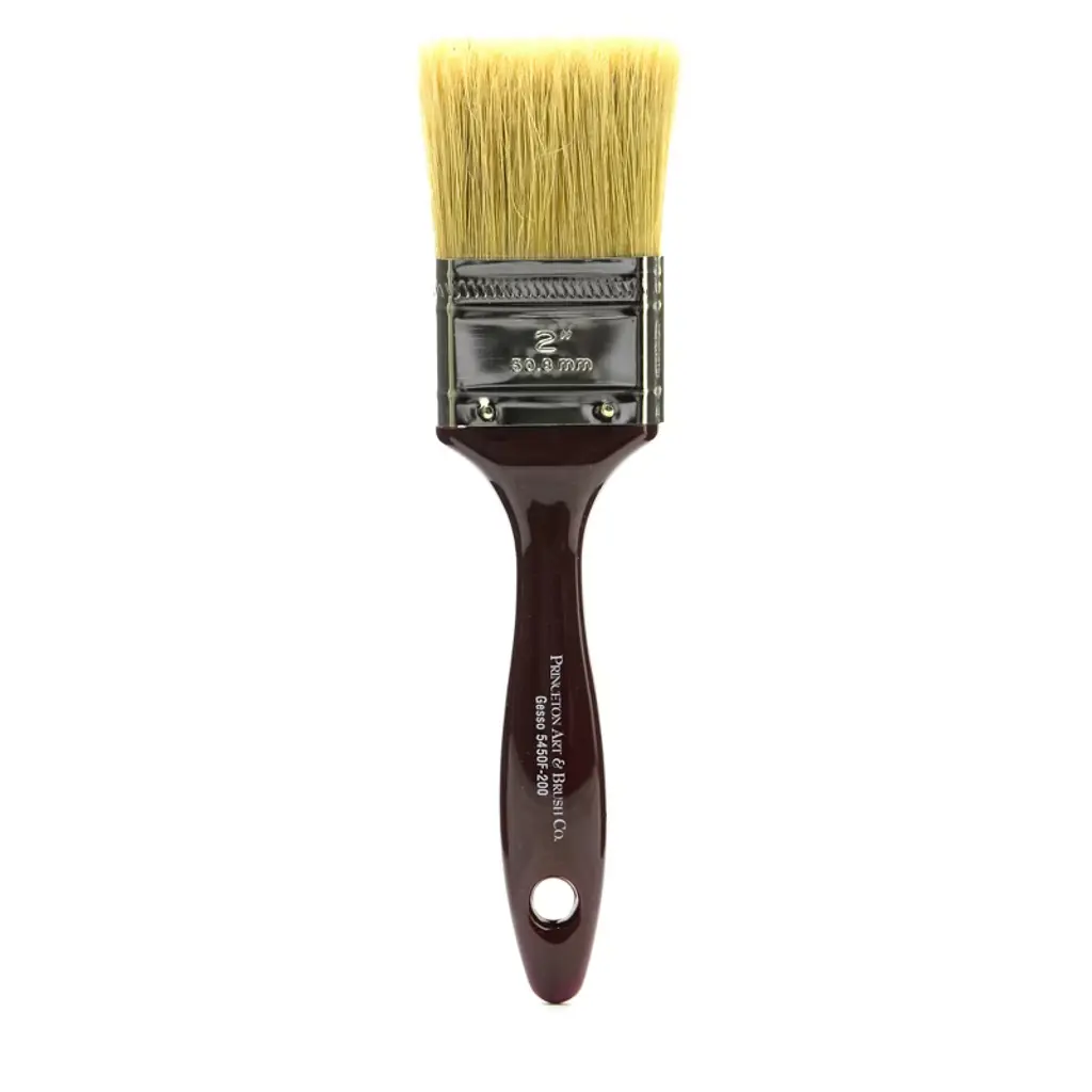 Princeton's Gesso Series 5450 Natural Bristle Brush offers a durable wood handle with a comfortable grib for preparing large canvases. The better bristle gesso brush features a natural bristle with stiffness and load capacity for applying gesso and varnish smoothly over a large areas. The large format design and durable construction makes it a great all purpose brush.