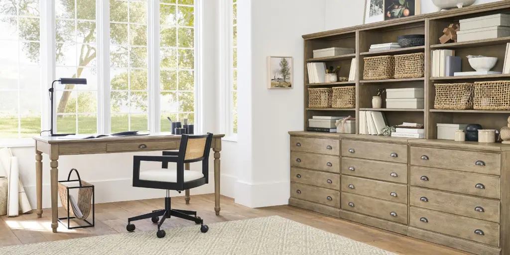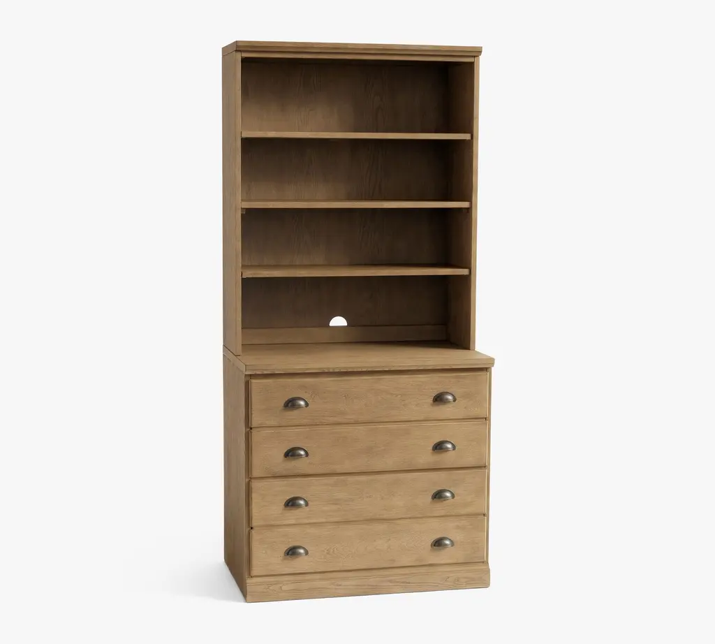 Capturing the industrial-cool aesthetic of a vintage typesetter's cabinet, our Printer's Collection seamlessly integrates modern function with timeless design. Antiqued cup pulls and a distressed finish pay tribute to the original piece that inspired it. Perfect for shared family spaces, the components can be combined in any configuration to create your ideal workspace, media room, or home office.