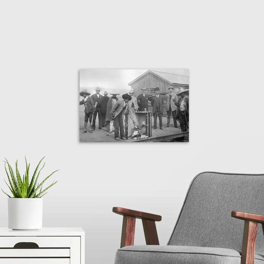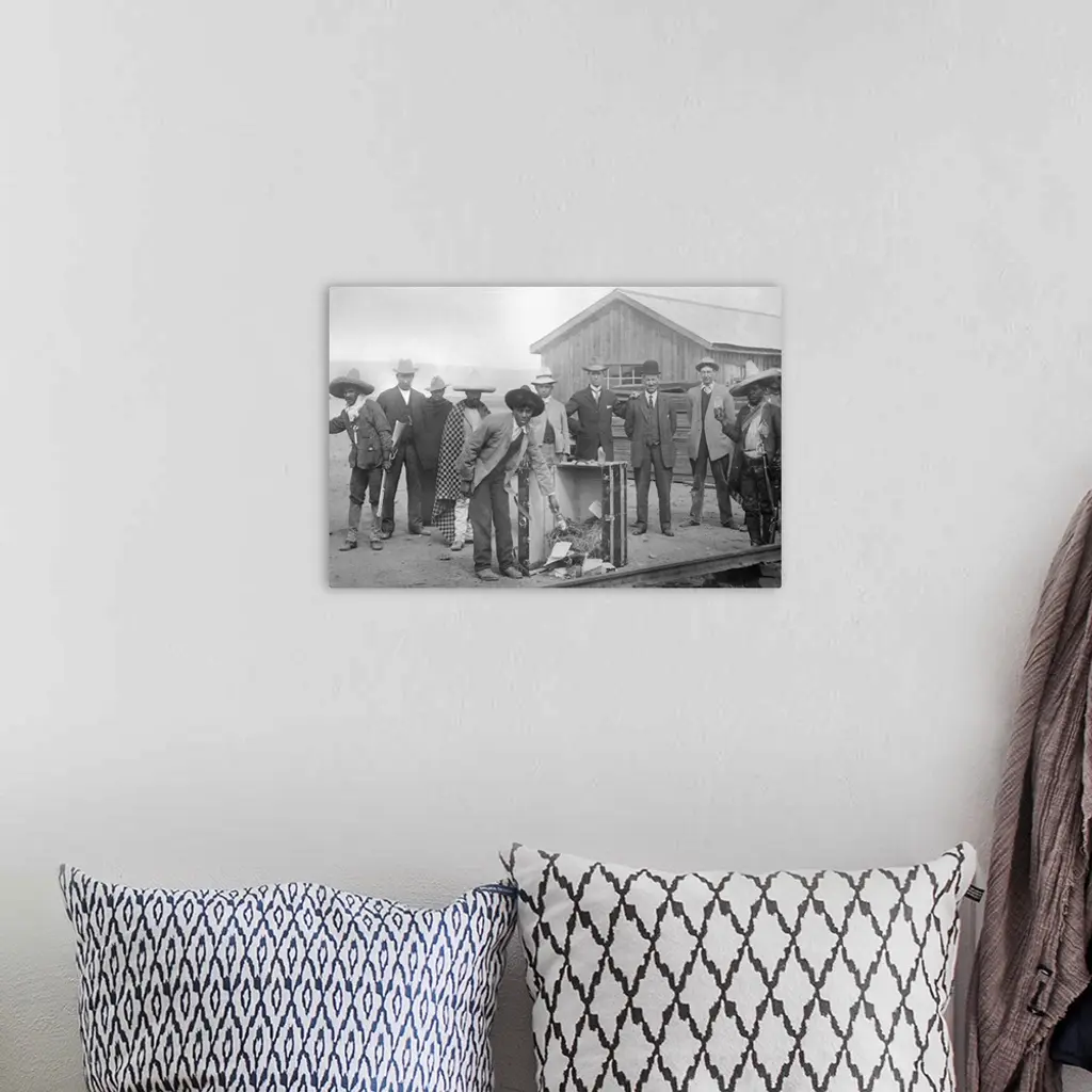 Destroying native Mexican whiskey at the Pearson Company headquarters in Chihuahua, Mexico, 1910-1915.