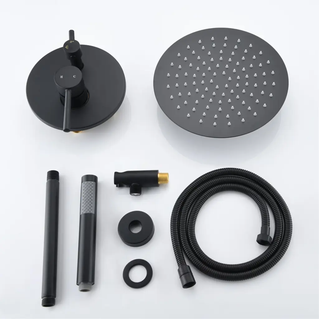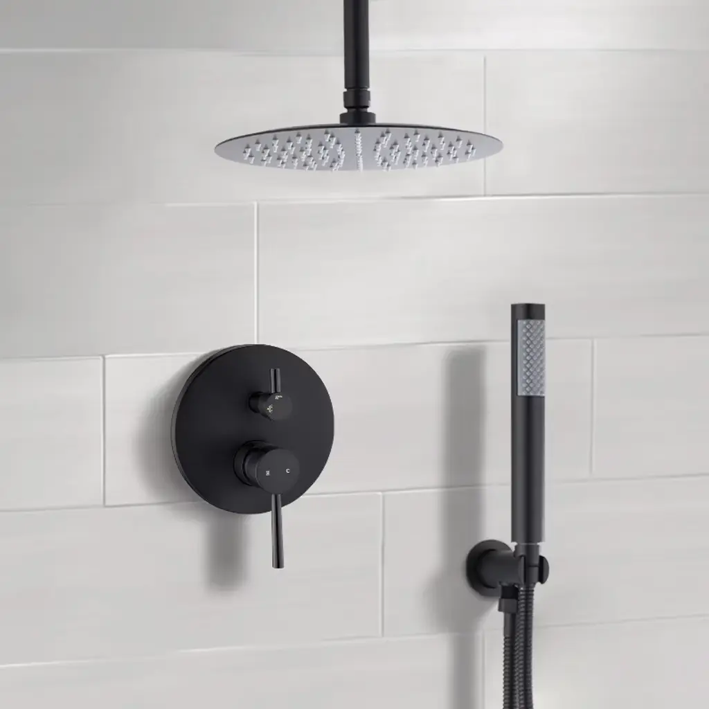Proox 2-handle 2-spray Round High Pressure Shower Faucet With 10 In. Ceiling Shower Faucet Set In Matte Black (Valve Included)