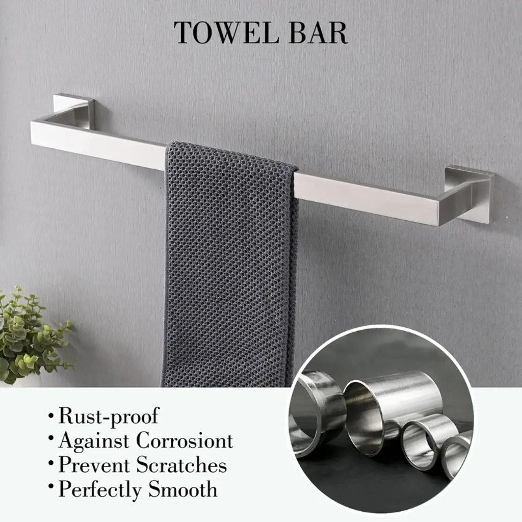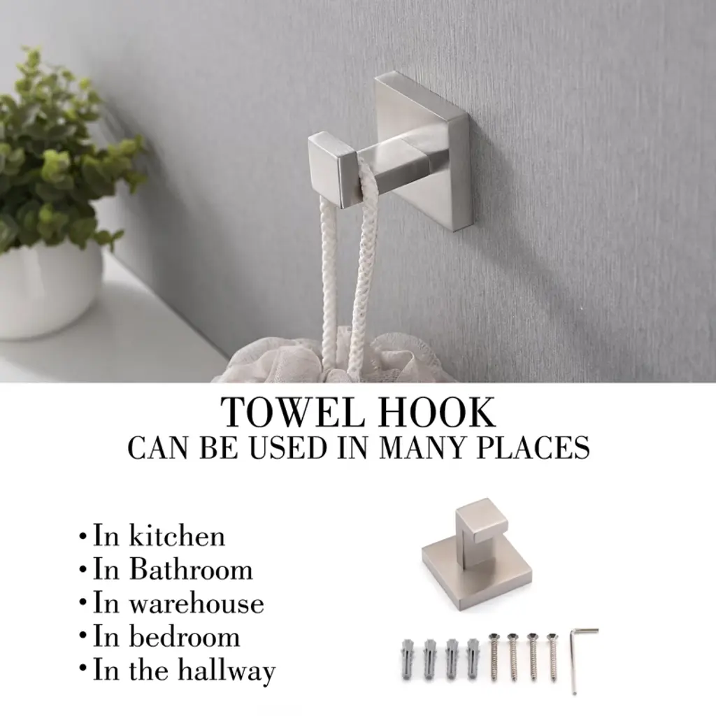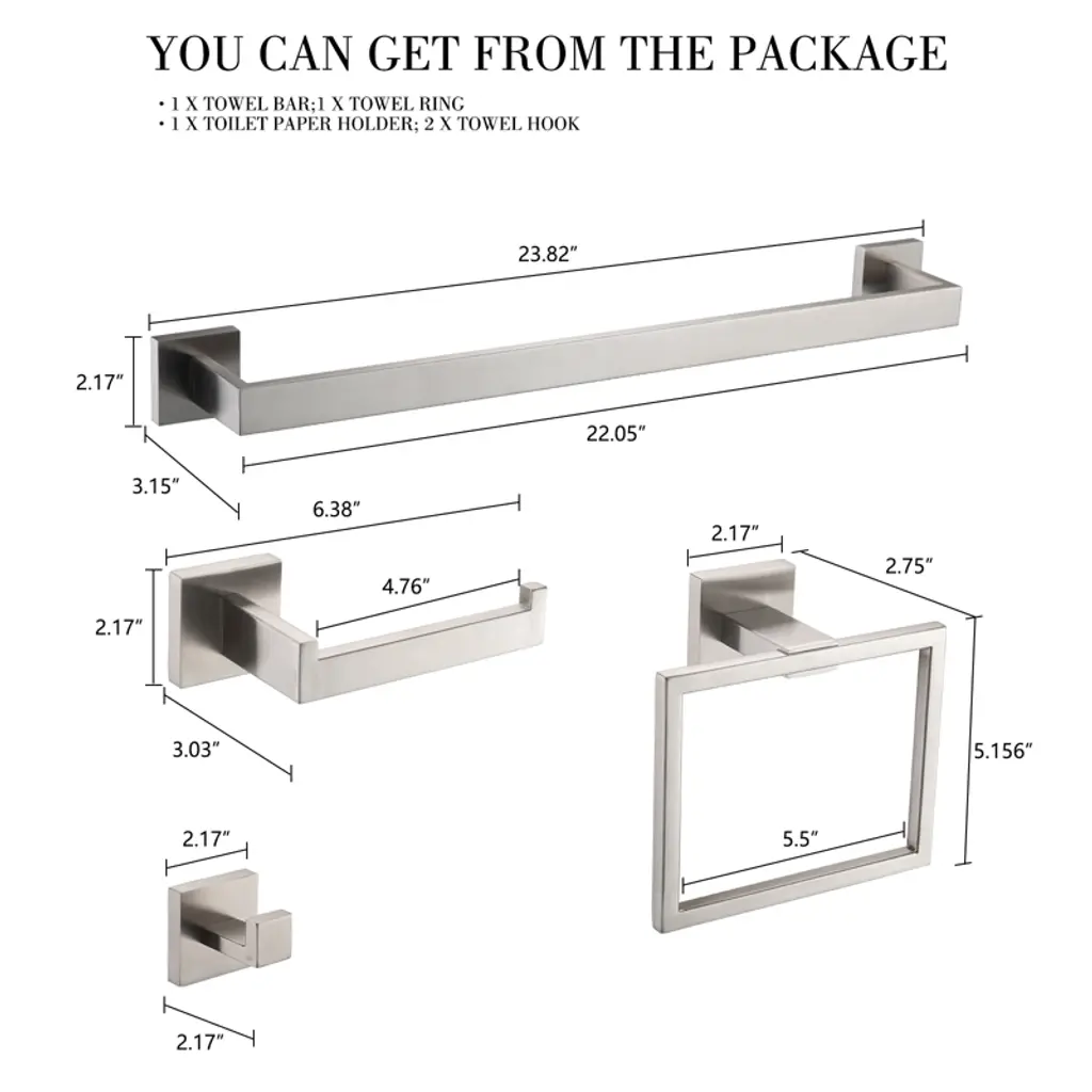 A sleek accessory for a modern bathroom, the PROOX 5 pieces bathroom hardware set features a square shape and simple details. Easy to install, this product will quickly change the appearance of your bathroom. Mounting hardware is included for easy installation.
