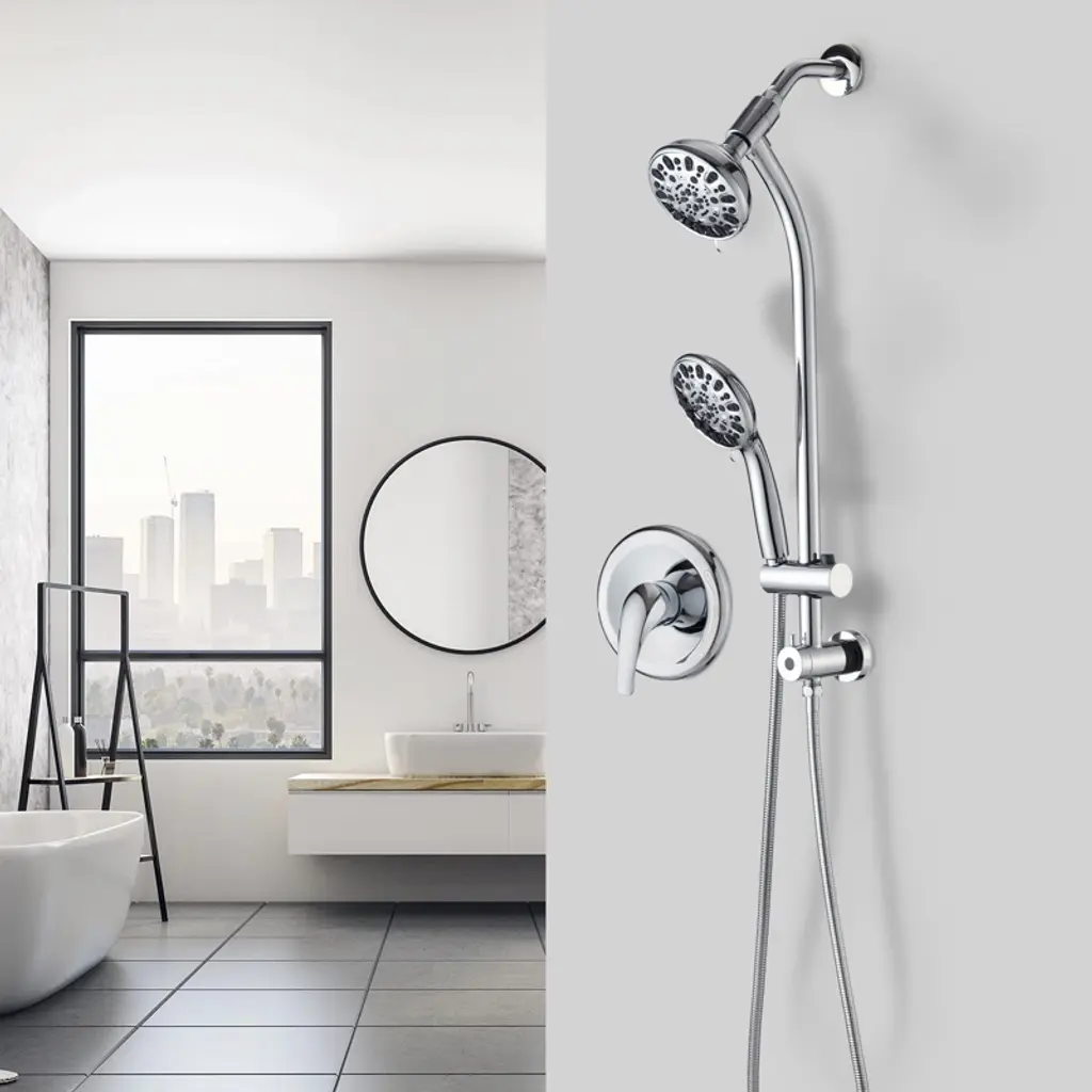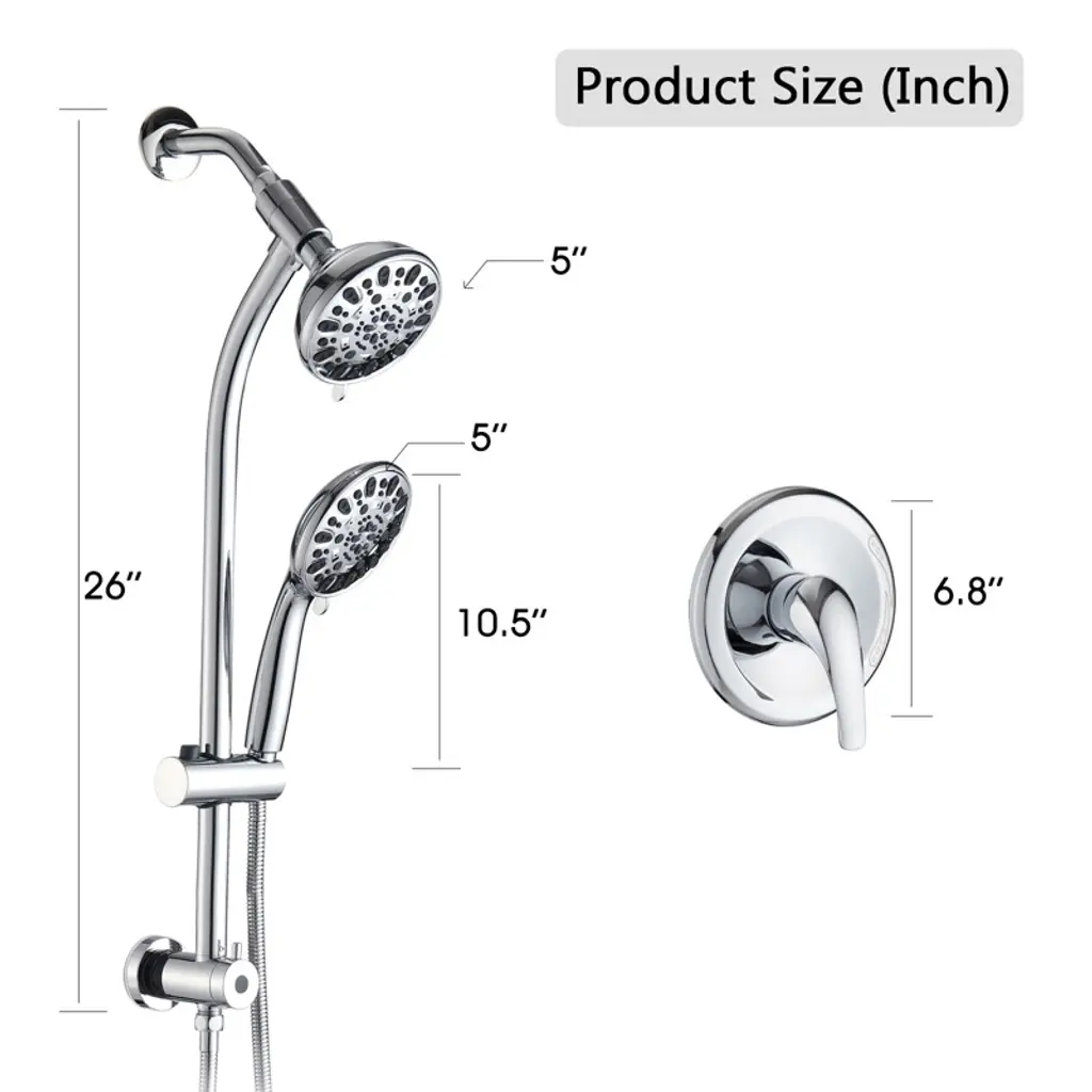 Proox 7-spray Patterns With 1.8 Gpm 5 In. Wall Mount Dual Shower Heads With Drill Free Slide Bar And Valve In Chrome