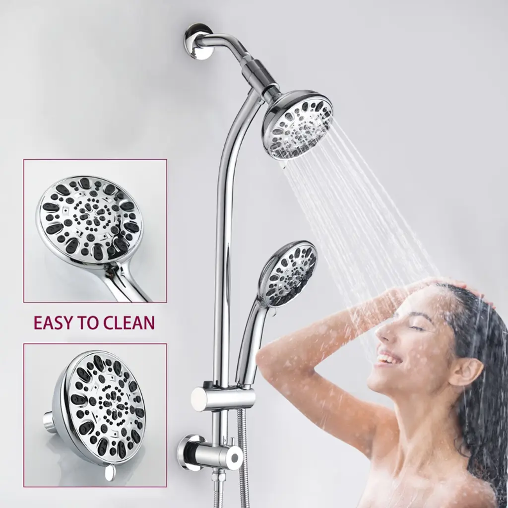The PROOX Rainfall Shower System allows you to transform you current shower with a more versatile luxurious experience. This shower set includes a tubular height- adjustable hand shower and an overhead rainfall shower head. A 5 ft. hose on the hand shower makes it easy to rinse hard-to-reach areas. This wall-mounted shower set is made of stainless steel and ABS. It includes a mixing valve.