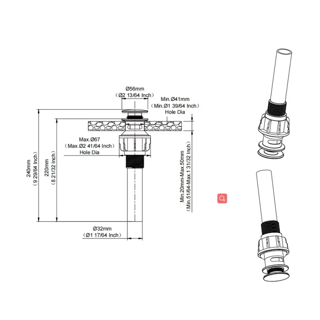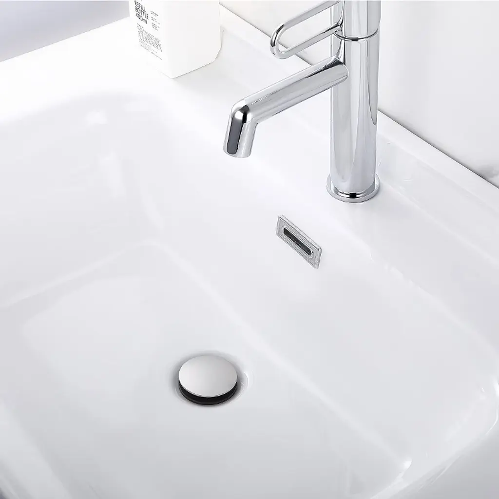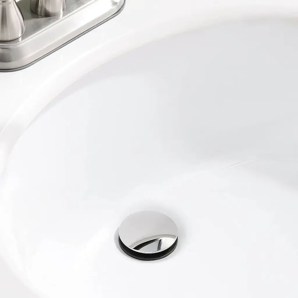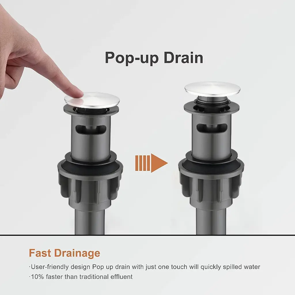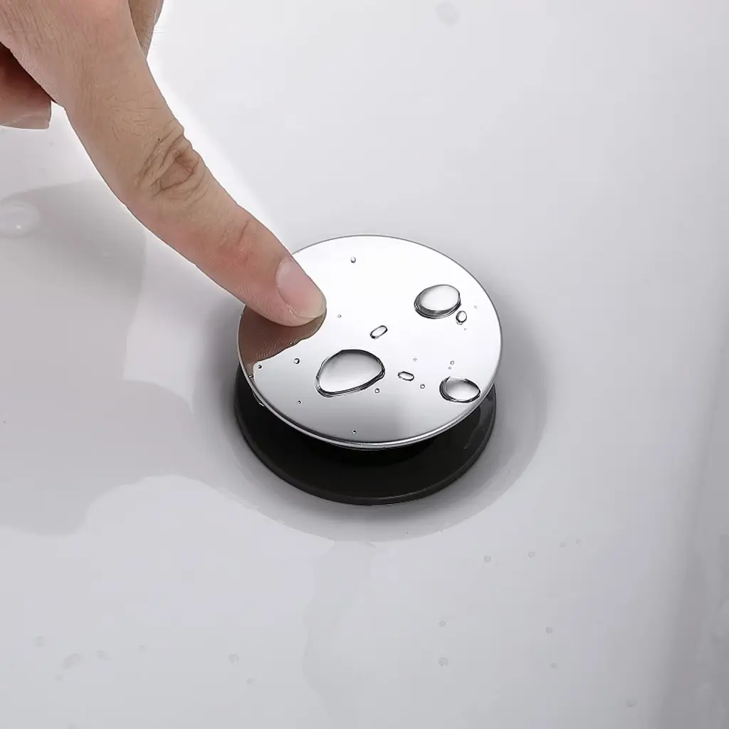 With a simple push, this plastic pop-up bathroom sink drain opens and closes. The Mushroom Pop-Up Straight bathroom sink Drain is ideal for bathroom sinks with overflow holes. The pop up drain Can't be used for Bath Tub, which is just used for Bathroom Sink.